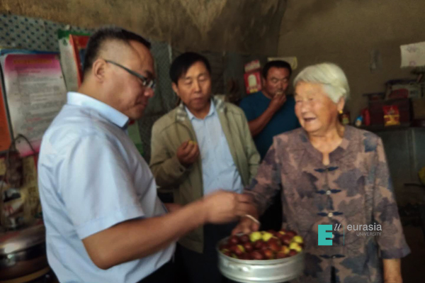 最后,大家一起来到了特困户王占军家,后勤集团党总支副书记刘红斌代表后勤集团将党员干部及教职员工捐赠的部分衣物,2000元现金及米面油等慰问品送到了王占军家中,期望他努力工作将孩子们培养成人,王占军感动得流下了热泪,为表达感谢,他特意从自家的枣树上精心摘下了两箱红枣让领导们带在路上品尝解渴。