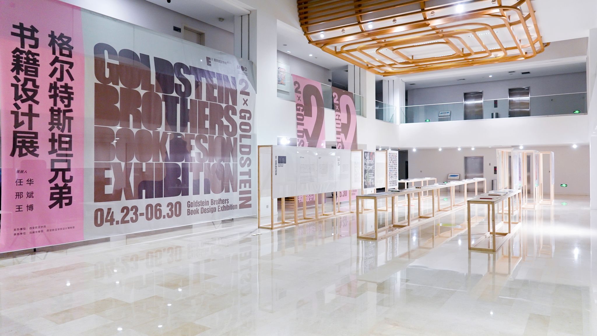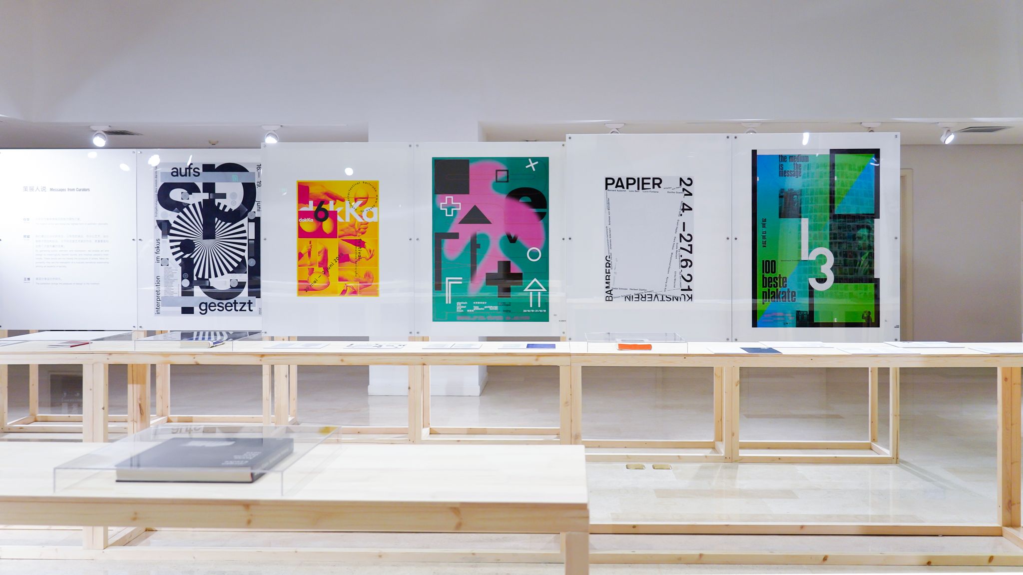 本次展览展出了两位设计师具有开创性与探索性的书籍及海报设计作品,这些排列巧妙、交叠融合的字体与图像跳脱而出,构成了他们独特的设计美学。