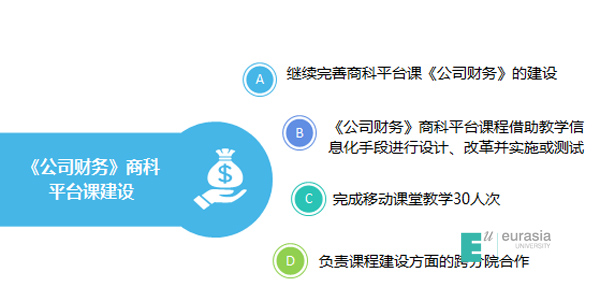 《公司财务》是商科平台课程。课程负责人艾珺老师精心设计课程,跨分院组建课程建设团队,根据每个学院专业的特色进行教学内容设计,并初步形成了涵盖移动课堂、专家讲堂、信息化、校内竞赛等凸显课程特色的建设思路。