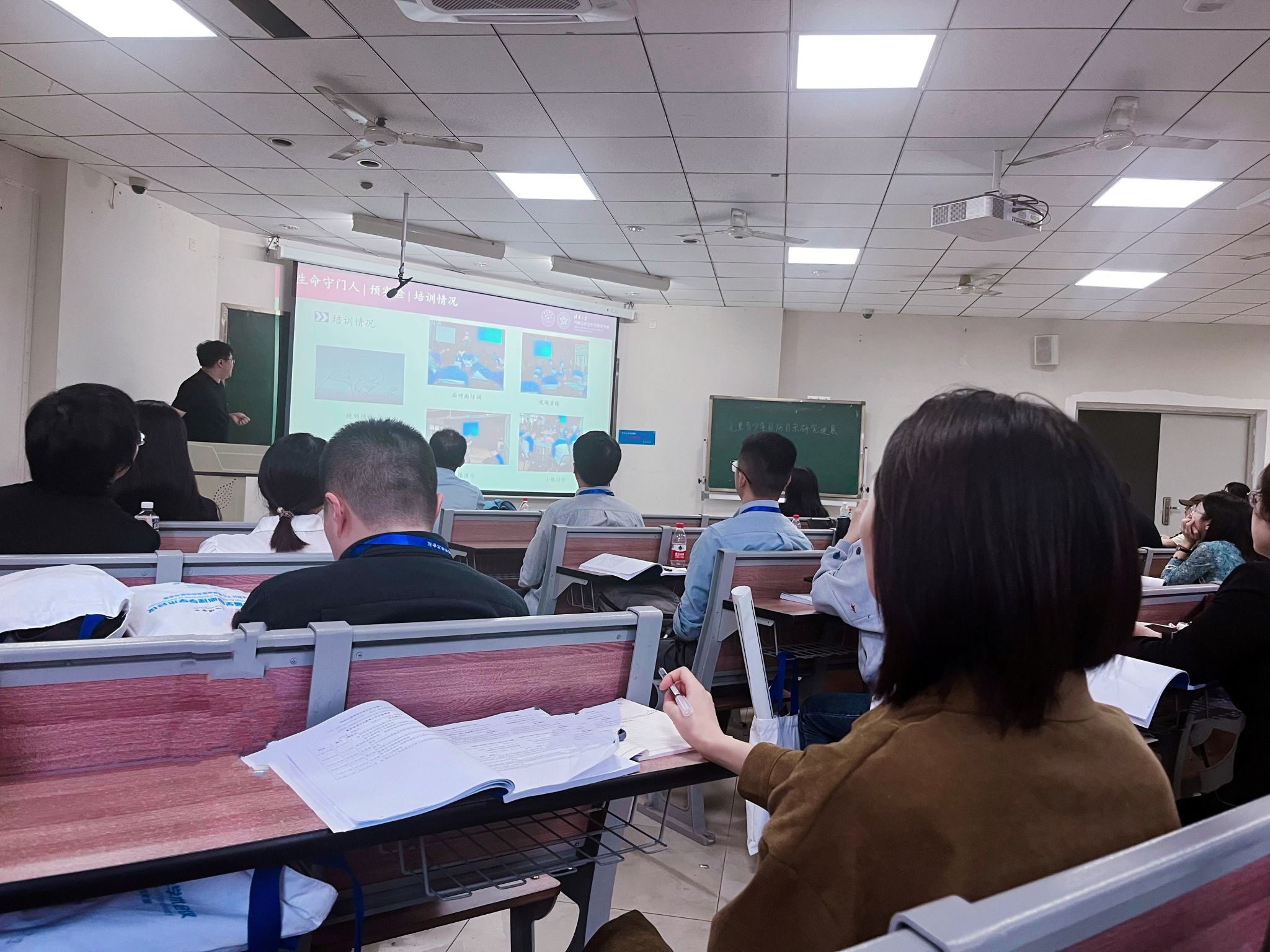 (图三)万红老师在认真学习会议报告
