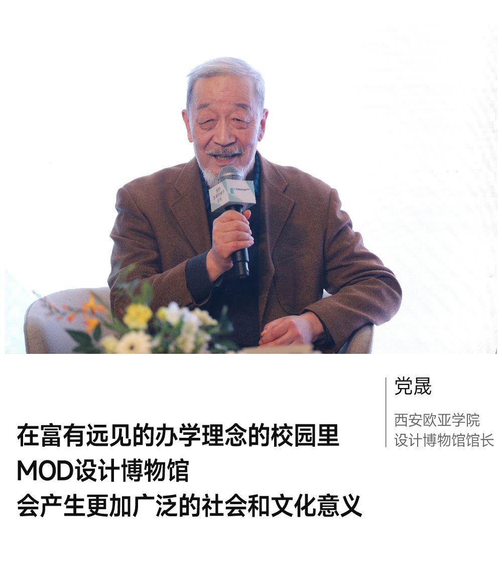 胡建波:我再补充一句,跟大家回顾一下当时跟党老师聊设计博物馆的情节。大约五年前,我和党老师、宋群先生、苏中秋先生相聚闲聊,讲起了我在加拿大游览过的一个民宿老街,这条老街复原了加拿大六七十年代的文化景象,里面有修车铺子、甜食店、银行、邮局等,而且还在营业。当时让我印象非常深刻的是,当我无意间走进了一个邮电所,那里的环境空间跟我小时候在西安所见的几乎一模一样。我跟几位先生分享了这段故事,也谈到了想建一条文化古街来复原西安记忆的想法,党老师听完就说这件事对欧亚学院来讲意义不大,应该建一个设计博物馆,更有艺术价值。