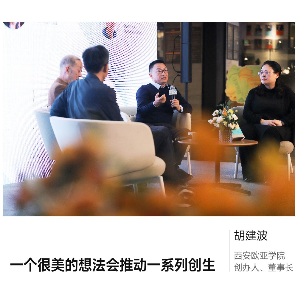 胡建波:当我创立欧亚的时候,我也在想我真正能为社会做出怎样的贡献,所以一方面教育教学改革,以学生为中心,为学生提供高质量的教育服务,另一方面开放办学,为周边地区、为城市发展不断做贡献。所以当我开始逐步改造校园的时候,就顺理成章,有了要给西安奉献新的人文景观、建最美好的校园的念头。后来这个理念引领着我们,先后请来宁波设计院、清华大学设计团队来做教学楼、欧亚图书馆,现在我们校园还有法国设计师逐步完成的一系列空间改造项目,澳大利亚设计团队操刀的西区学生中心已经封顶。所以经过二十多年,到今天可以说很欣慰能够给这个城市奉献了美好的人文景观,未来欧亚还会给西安奉献更多。