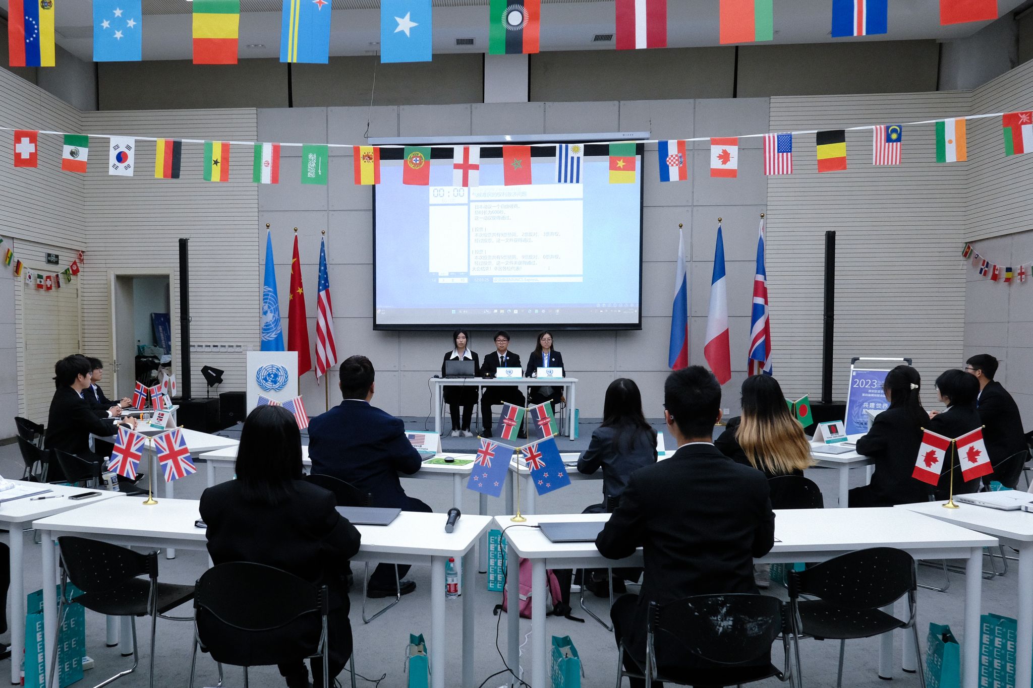为拓宽学生国际视野,提升跨文化沟通能力,促进学生在“社会责任、国家认同、解决问题”方面能力的提升,sunbet申慱官网第四届模拟联合国大会于2023年11月18日在大学生活动中心多功能厅成功举办,来自全校共180名师生参与了本次活动。