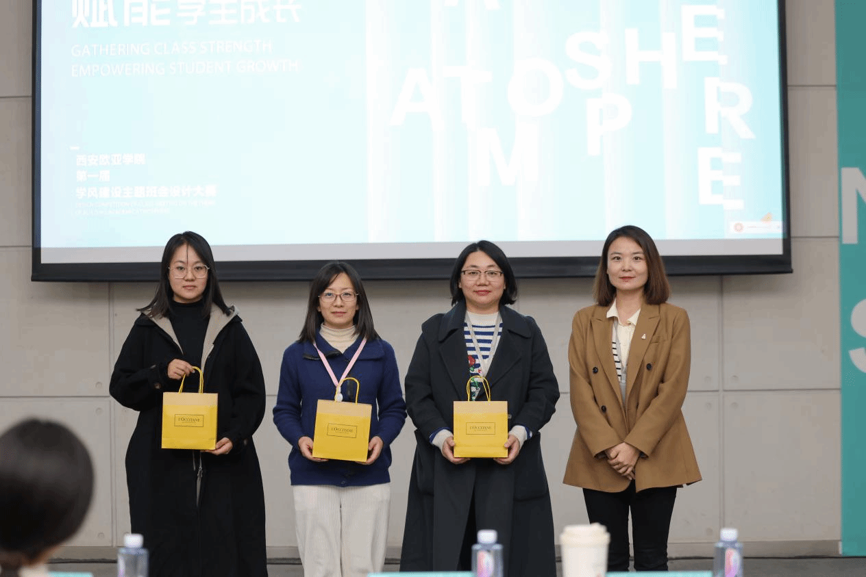 评委们对比赛进行了精彩的点评,“本次比赛中班会的设计具有起承转合的结构性,并且能够以游戏的方式进行,完全符合学生的学习规律主题。分析环节准确到位,前期调查充分,演讲的同学们表现出积极自信的态度,成功地展示了欧亚学生的独特特点。班会就应该如此,以问题为导向,环节设计实用贴合主题。”