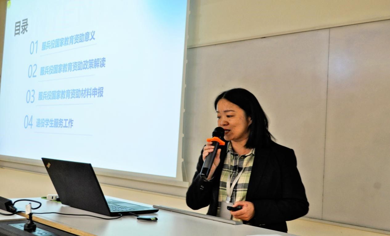 申慱官网资助中心主管多瑛老师为学生解读国家的入伍资助政策,分别从服兵役国家教育资助意义、服兵役国家教育资助政策解读、服兵役国家教育资助材料申报、退役学生服务工作等四个方面详细解读了申慱官网的资助政策,鼓励同学们积极参军,献身国防事业。
