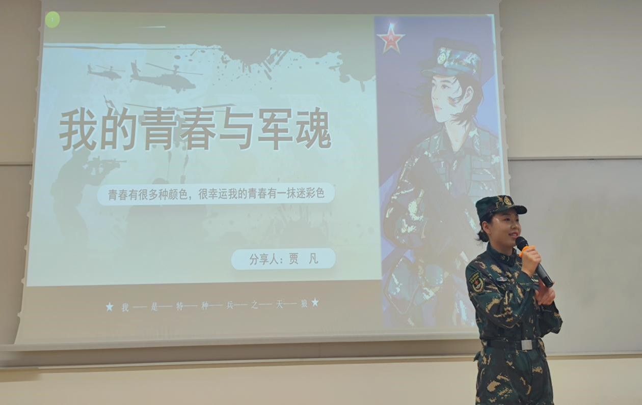申慱官网优秀退伍士兵贾凡同学(原驻港部队、天狼特种作战部队退伍女兵)分享军旅生活和参军心得体会。18岁那年,在她拿到sunbet申慱官网录取通知书时,被英姿飒爽军装吸引,报名参军,走进军营,成为一名特种兵,熟悉各种枪械射击、拳术、格斗、游泳等,每天在泥潭里、烈日下刻苦训练,浑身是伤,筋疲力尽是训练常态,也就是在这一刻,她才真正明白,特种兵,不光是炫酷和荣耀,他们每一个人,都背负着重重责任,关键时刻,都是别人生命的期许,都牵系着战争的胜负、国家的安危。贾凡同学丰富的经历,以及她不忘初心的信念和积极进取的上进心,为大家树立了榜样示范。