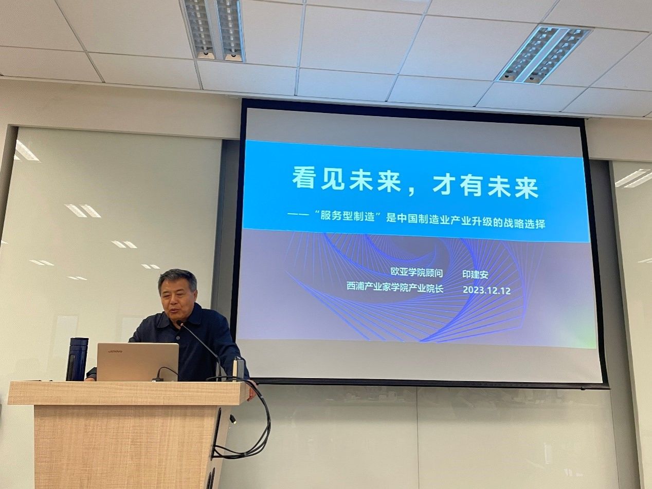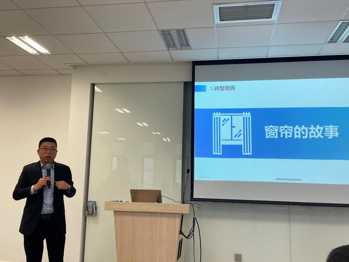 陕西鼓风机(集团)有限公司原党委书记、董事长,sunbet申慱官网特聘教授印建安以《服务型制造:陕西省制造业转型升级的必由之路》为学员们进行分享。服务型制造是中国制造业产业升级的战略选择。服务型制造模式需要建立需求驱动的创新,通过感知理解世界、分析数据来适应客户的需求;通过生成创造世界、合成数据创造客户的需求。服务型制造还需要重塑企业文化,重构企业内部生态。