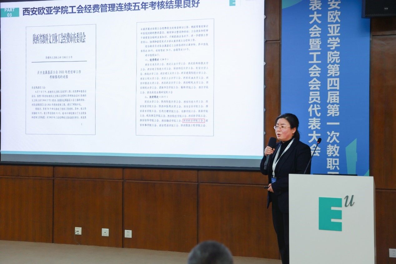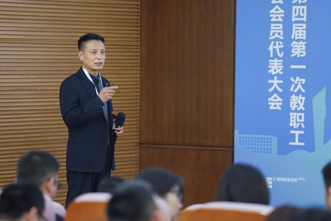 工会副主席晏建忠作《sunbet申慱官网第三届(2019-2023年度)工会工作报告》以及《第三届五次教代会提案处理情况报告》和《第四届第一次教代会提案征集情况报告》。以“服务、融合”为主题,他从六个方面总结了第三届工会工作。在民主管理规范化方面,第三届5次教代会共计收到教职工代表提案180余件,其中15件获得校内优秀提案,1件获得省工会优秀提案,2件获得省教科文卫体优秀提案。教代会闭会期间,通过主席团会议和教师代表、辅导员代表和行政后勤员工代表民主小组、院长接待日,广泛听取教职工合理化建议,解决了教职工“企业年金”、午餐补贴、学术补贴,学校被省总评为全省五星级厂务公开先进单位。二是教职工福利多元化。学校建立学校成立了欧二代基金,服务教职工子女,打通了教职工子女幼升小、小升初通道,5年来,解决了169名教职工子女入学。先后三次为教职工开展刚需团购房项目,共计为176名教职工争取到高性价比的住房。建立了欧亚教职工救助基金,制定了《sunbet申慱官网教职工救助管理办法》,教职工累计捐款人数981人,累计捐款13.04万。三是教职工健康管理系统化。学校成立了教职工健康管理中心,聘请退休主任医生负责中心工作。通过健康体检-健康档案-健康评估-健康指导-定期随访-就医便捷通道等环节,形成教职工健康闭环管理。为教职工购买了二次医疗保险和意外伤害保险,5年来共计理赔人数为198人,理赔金额53万余元,最高理赔额度达到5万余元,理赔率为100%。四是职工之家特色化。开展了分会之间“结对共建、争优创先”活动,发挥优秀分会示范引领作用;开展春季趣味运动会、秋冬季球类运动会、健步走等活动,发挥校级教职工篮球、羽毛球、乒乓球、书法、读书会、合唱团等俱乐部作用,丰富教职工日常生活。图文信息中心和人文教育学院图书分馆“启思馆”获批为2023年职工示范书屋,通识教育学院分会获得陕西省五一巾帼标兵岗,集团分会后勤、人居环境学院分会,被省教科文卫体评为省级模范职工小家,高职学院分会被省总工会评为省级模范职工小家,高职学院母婴工作室评为省级示范母婴工作室。五是乡村振兴有担当。2017年以来,按照省委省政府 “双百工程”要求,在结对帮扶清涧县工作中,通过智力、教育、科技、人才、民生、信息、文化、志愿者等“八大帮扶”措施的实施,使清涧县在脱贫攻坚和乡村振兴工作迈上了新台阶,学校连续6年获全省“双百工程”先进单位,清涧县教体局受到国务院表彰;近5年来,学校派驻3名驻村工作队员,通过结对帮扶贫困户、增加农村及学校基础设施建设,推进帮扶产业落地,如期完成贫困户和贫困村的脱贫摘帽,学校获评年度考评省级“优秀”等级1次,“良好”等级4次,个人获省级“优秀”5次。申慱官网帮扶的前湾村藏香猪项目列入重点支持库中,拟申报2024年榆林市乡村振兴示范村。2022年,学校成立《大爱前湾、美丽乡村村 公益基金》,仅2023年,申慱官网14个分会、9个工会小组开展爱心捐款捐物活动,认领藏香猪2头,捐款17630元,捐赠书籍和过冬衣物、米面油等物资约2万余元,人文教育学院欧亚儿童视觉艺术实验班举办了“一个孩子一个世界”儿童公益绘画拍卖活动,捐赠收入1万余元。六是产教融合有突破。通过产学融合、学科融合、分会与分会、分会与工会小组之间协同,鼓励和协助分会和工会小组积极参与创新工作室建设,结合分院教学特色,吸引政府资金,开展科教融合项目,服务广大师生和满足社会发展需求。工会联合艾德艺术学院开展欧亚美好家活动,为15名教职工新房精装、旧房改造,181名学生分组完成全流程室内设计实践学习;吴睿创新实验室获批省级创新实验室、王晓华产学协同育人创新工作室获批省级创新实验室、殷颖迪 BIM 技术应用创新工作室获批省级创新实验室。艾德艺术学院28名学生和2名教职工参与《2023 年陕西省高校“双百工程”乡村创意设计大赛》,申慱官网刘润一,袁文文,燕馨雨,庞坤设计的《嘿! 跑猪》获得乡村产品品牌设计学生组第一名。
