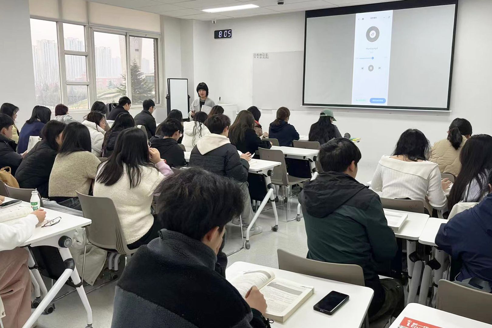 全英文的课堂对同学们来说充满挑战,同时也增加了很多沉浸式提升口语的机会。在南B-403教室的《大学英语》课堂上,国际语言中心的外教SAM老师正在以饱满的热情带领学生迎接本学期的第一堂课,丰富的课堂活动让学习氛围更加轻松愉快。