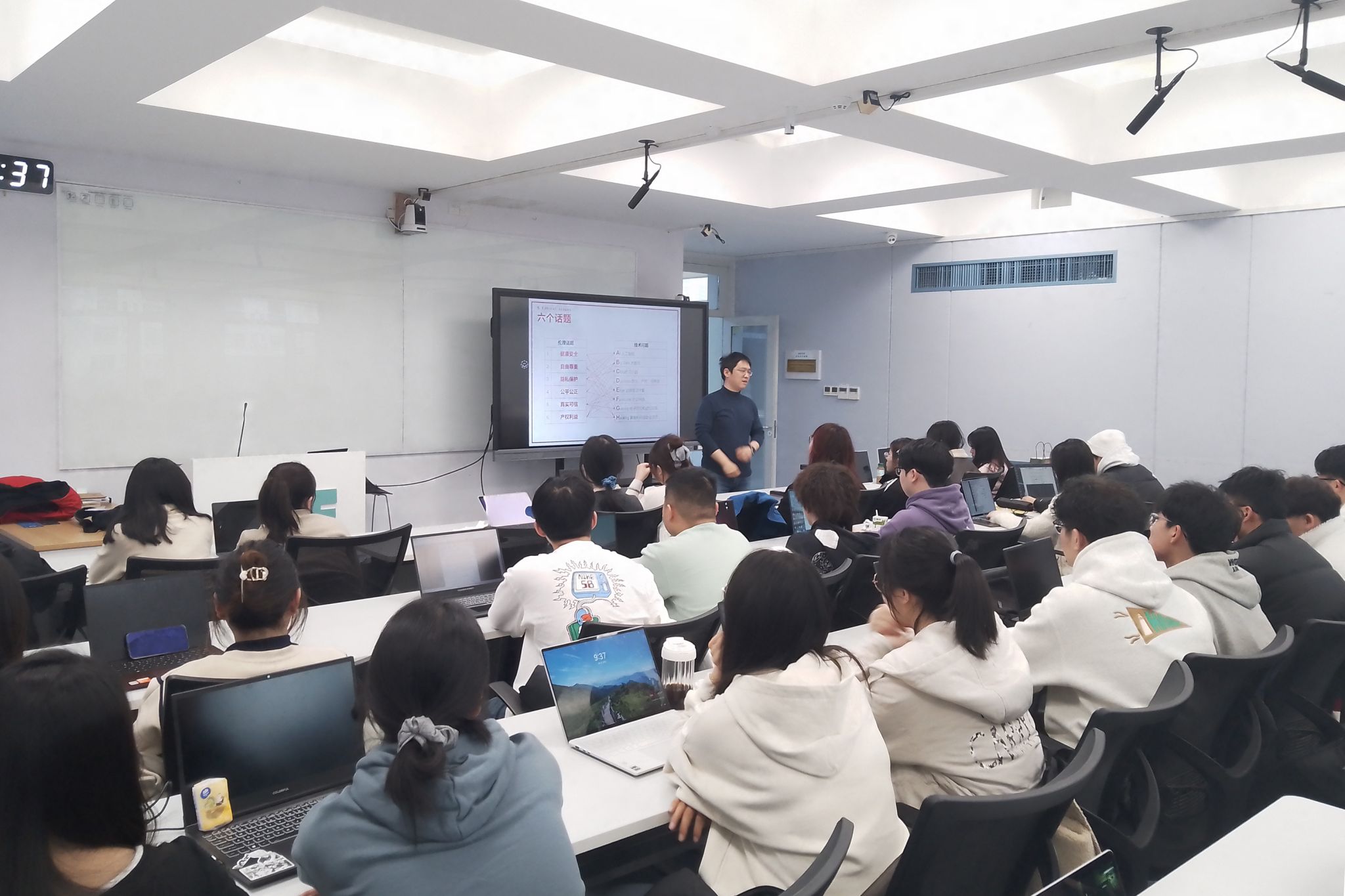信息工程学院软件工程专业中外合作办学项目这学期开设一门外方引入课程——《计算机伦理》。“你认为计算机科学与技术有好坏善恶之分吗?”和“计算机执业人员和律师、医生等有区别吗?”……在西B-416教室,胡红飞老师通过这些话题讨论,结合当前的人工智能、大数据、云计算、知识产权保护、网络安全等技术,引导学生思考科学技术发展过程中的道德和伦理问题,培养学生对计算机伦理问题的敏感性和责任感,使他们在未来的职业生涯中能够遵循伦理原则,做出负责任的决策,并为社会和人类的福祉做出贡献。
