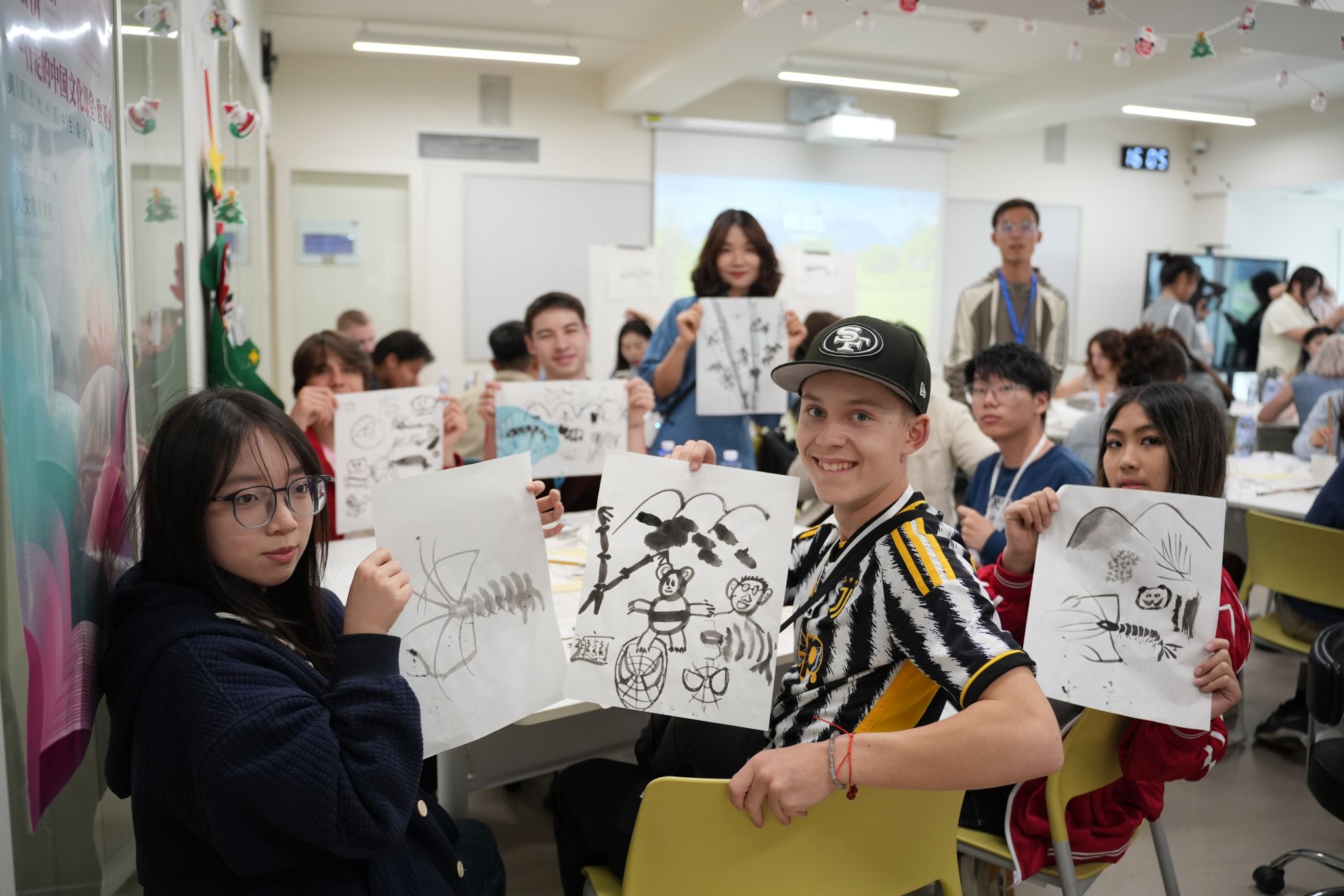 来自2021级应用心理学专业双语班的志愿者鲜婧妍说:“这段美好的时光充满了欣喜、互动与收获。在学校的餐厅,我们共进午餐,品尝了地道的中国美食,那一刻,饮食文化的交流让我们的友谊迅速升温。尤其令人难忘的是那节毛笔山水画课程,他们手持毛笔,专注而投入,尽管初次尝试,却表现出对中华艺术的热爱。他们饶有兴趣地分享了美国中学生的日常生活以及在河南少林寺的独特体验,对于古都西安更是赞不绝口。这次活动让我深刻认识到文化交流的力量,它能让世界各地的年轻人打破地域界限,增进相互理解和友谊。同时,也引发了我对如何更好地推广中国传统文化,使其走向世界舞台的深入思考。未来,我们将继续努力,让更多国际友人有机会亲身体验和感受中华文化的博大精深。”