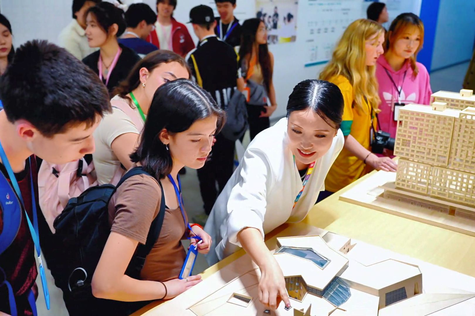 在南区学生客厅、图书馆和设计博物馆等地,江翡向学生们介绍了欧亚校园的建筑风格、教学设施和文化活动,带大家体验欧亚国际化教育的魅力和“以学生为中心”的开放学习氛围。美国中学生和人文教育学院的志愿者同学们结伴而行,彼此分享着各自的学习经历和校园体验,互相了解对方的文化背景和生活习惯。