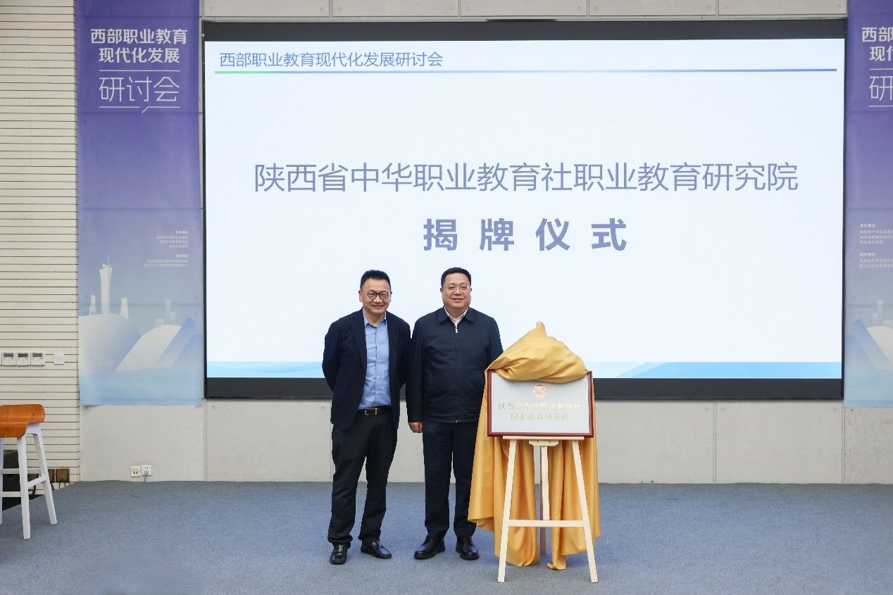陕西政协副主席、陕西省中华职业教育社主任李忠民与sunbet申慱官网董事长胡建波共同为“陕西省中华职业教育社职业教育研究院”揭牌。陕西省中华职业教育社职业教育研究院旨在整合省内职业教育研究与咨询力量,搭建智库与跨界交流平台,围绕职业教育管、办、评三个关键过程中的现实问题,进行研究和服务,为政府部门的制度设计与政策供给提供决策与技术支持,为职业院校关键办学能力进行赋能,为职业教育评价改革提供有效助力。
