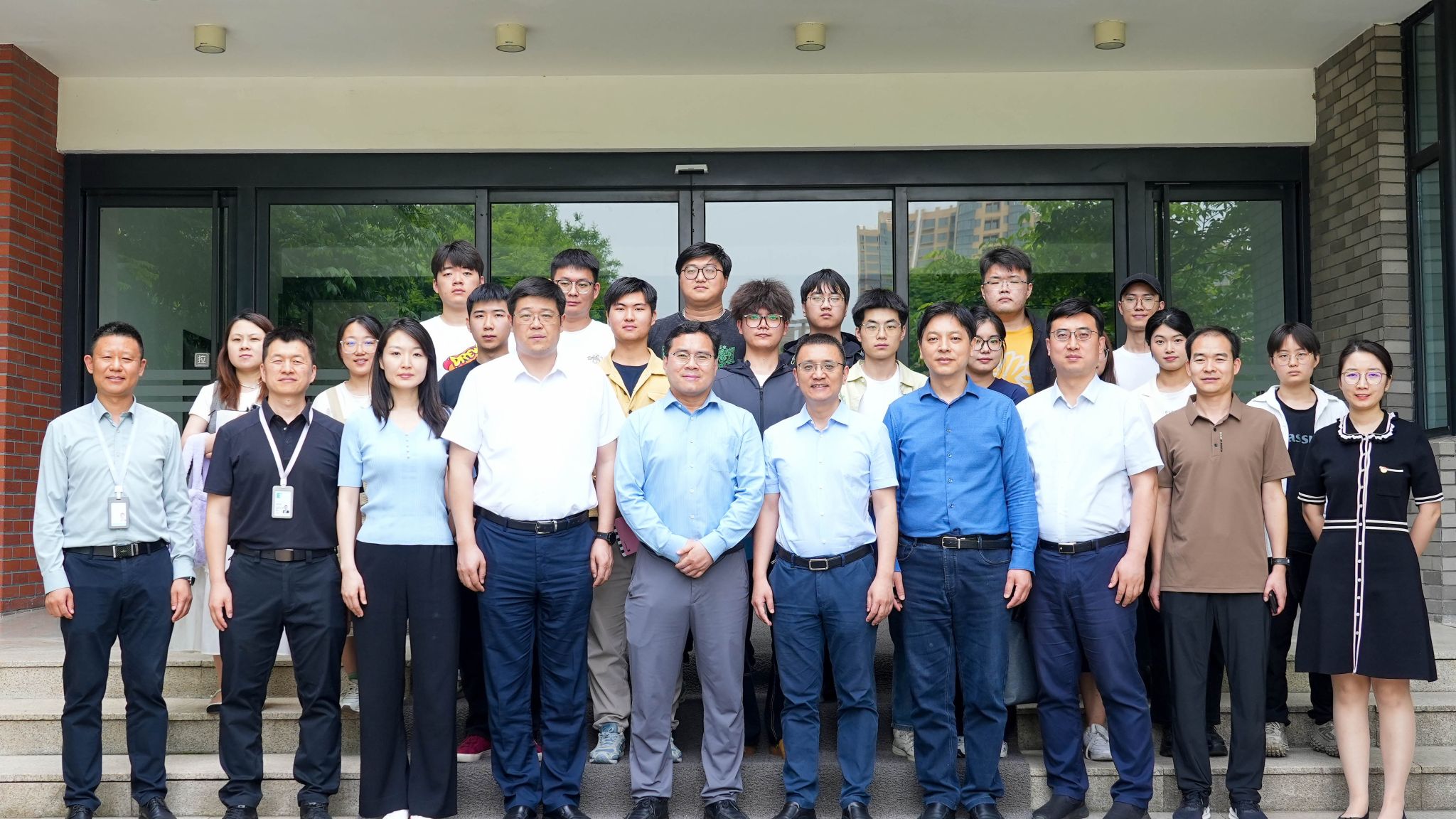 最后,全体与会人员在行政中心门口合影留念。