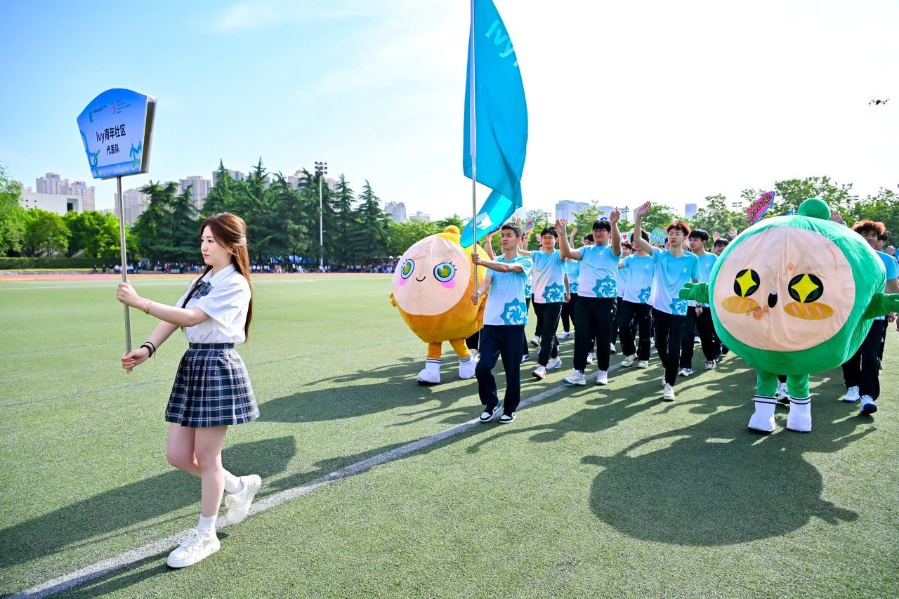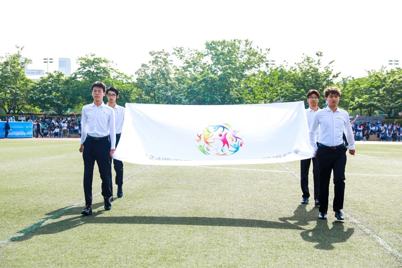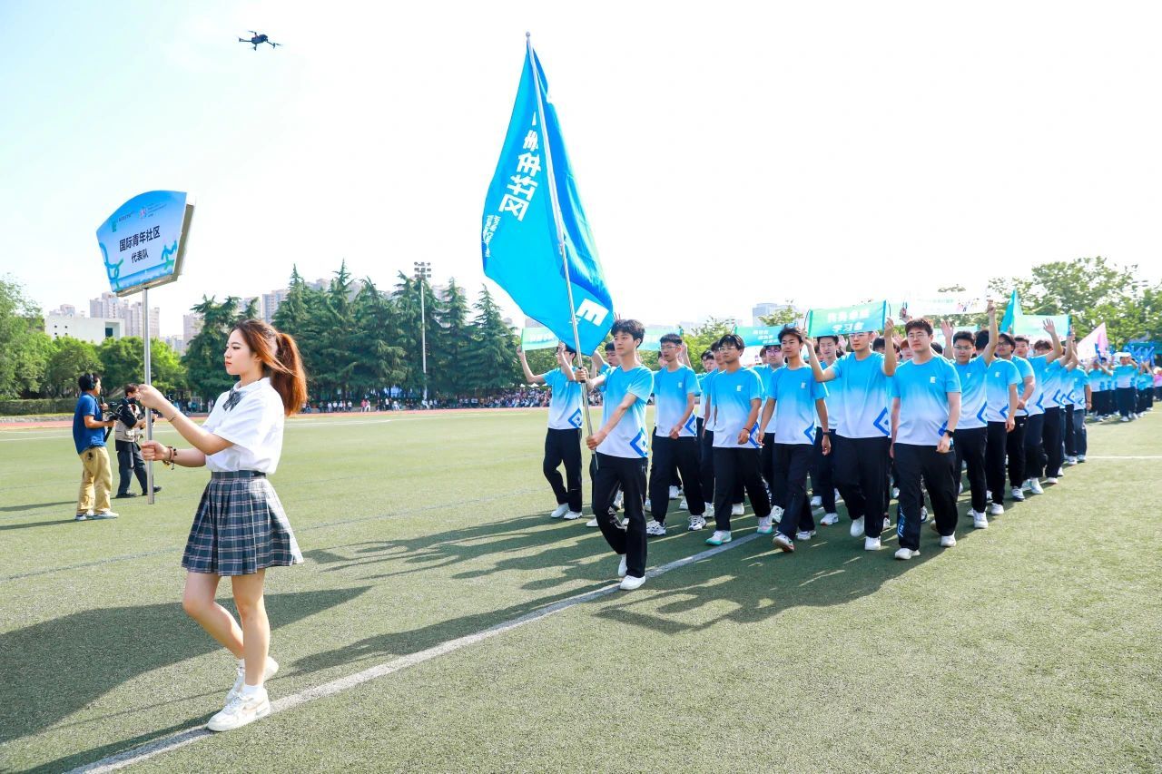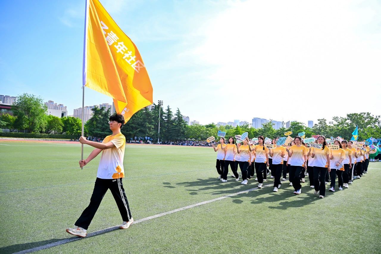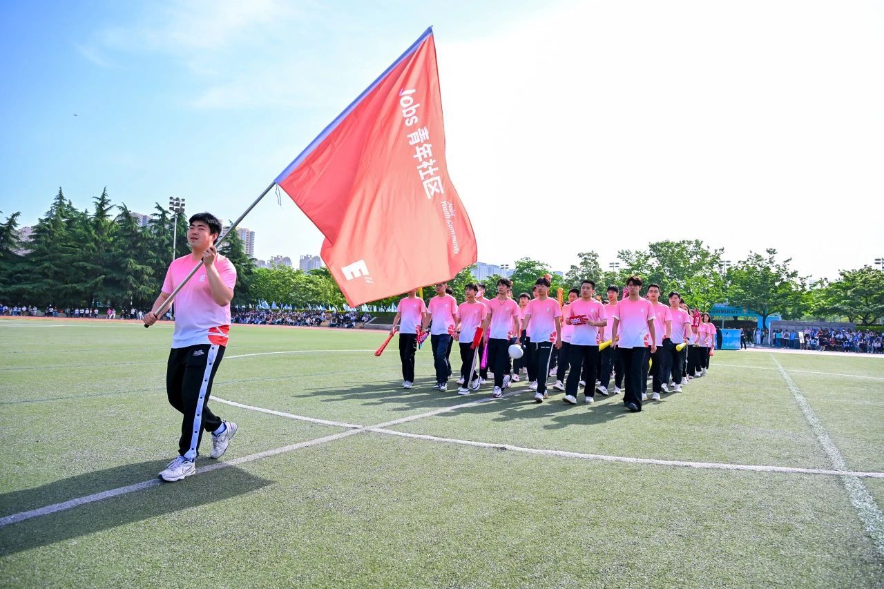 接着,国旗、校旗、会旗方阵入场,青年社区运动员代表方阵依次入场,旗手们迈着矫健的步伐,坚定地向主席台走来。他们手举旗帜,旗帜在风中飘扬,充分展示了青春的朝气与活力。