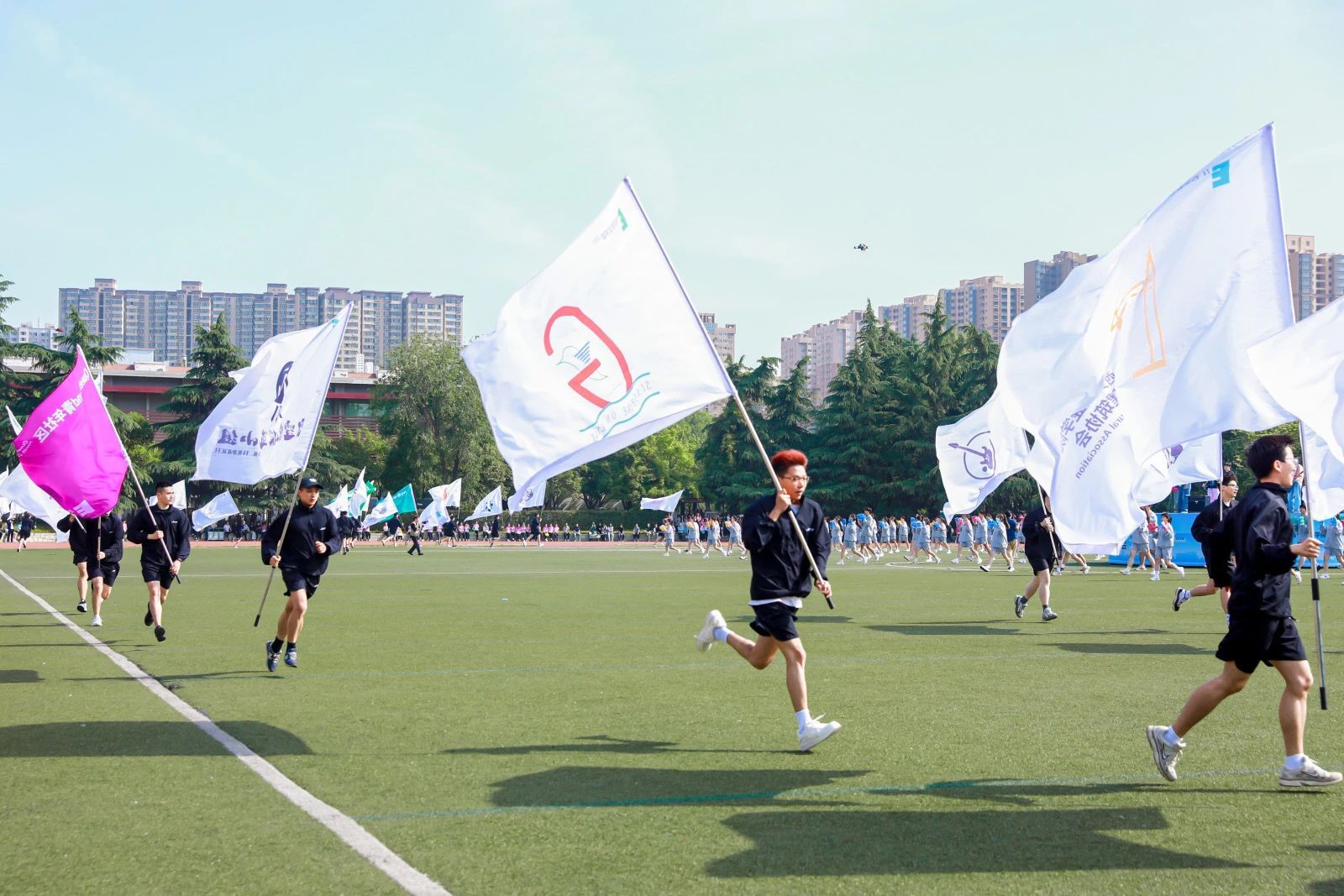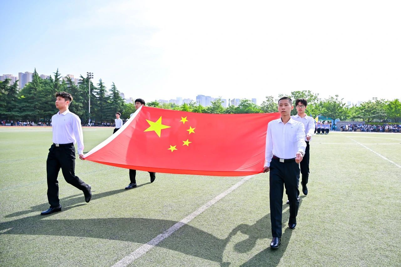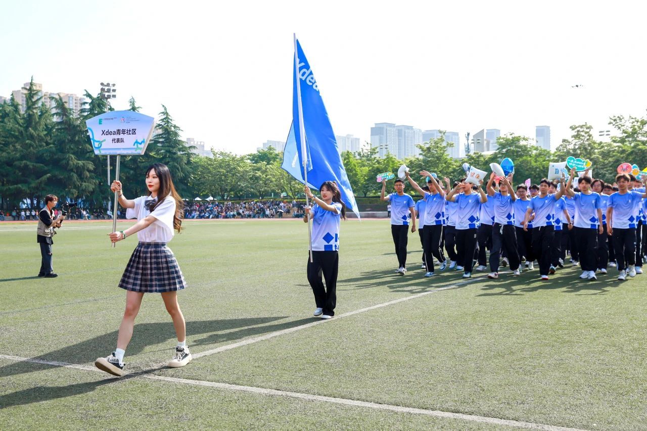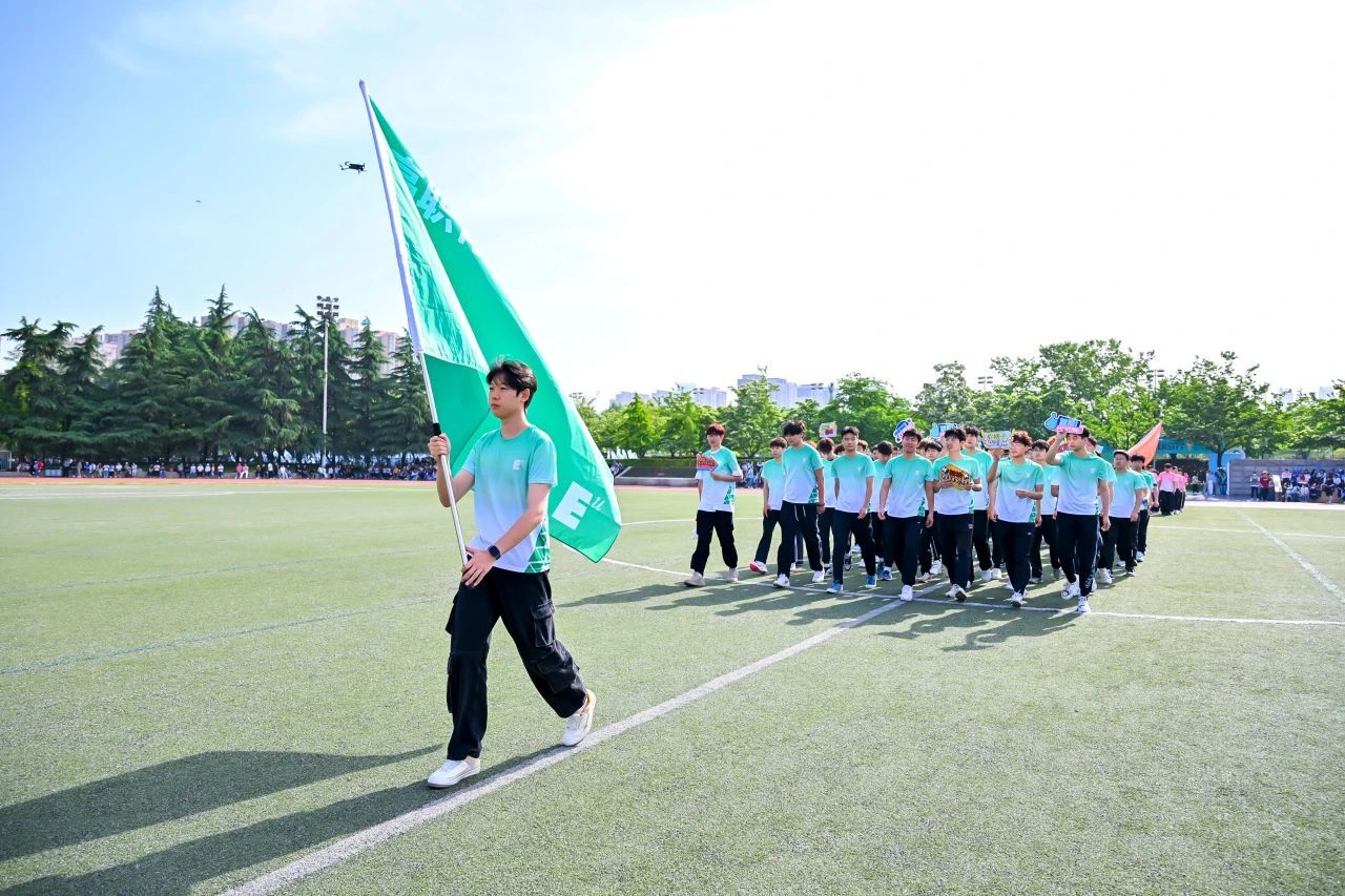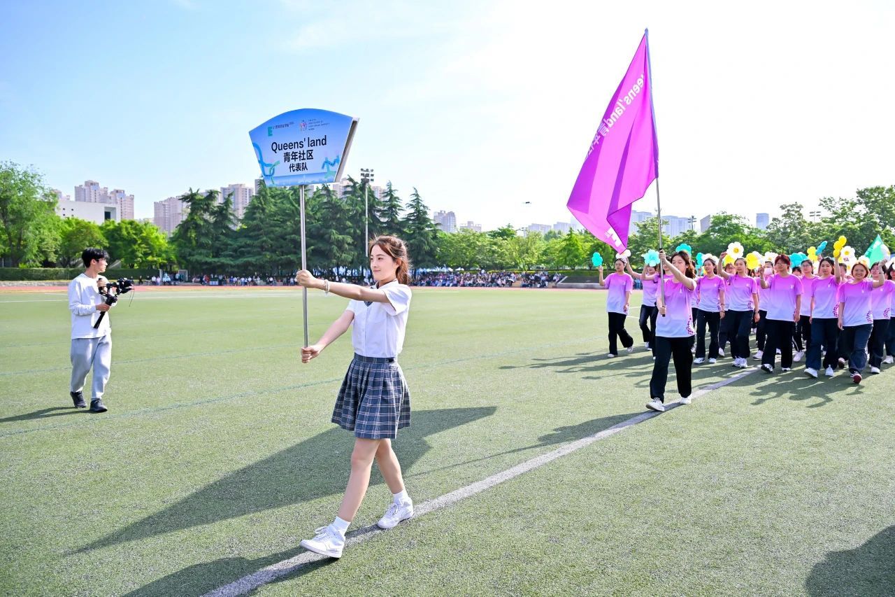 接着,国旗、校旗、会旗方阵入场,青年社区运动员代表方阵依次入场,旗手们迈着矫健的步伐,坚定地向主席台走来。他们手举旗帜,旗帜在风中飘扬,充分展示了青春的朝气与活力。
