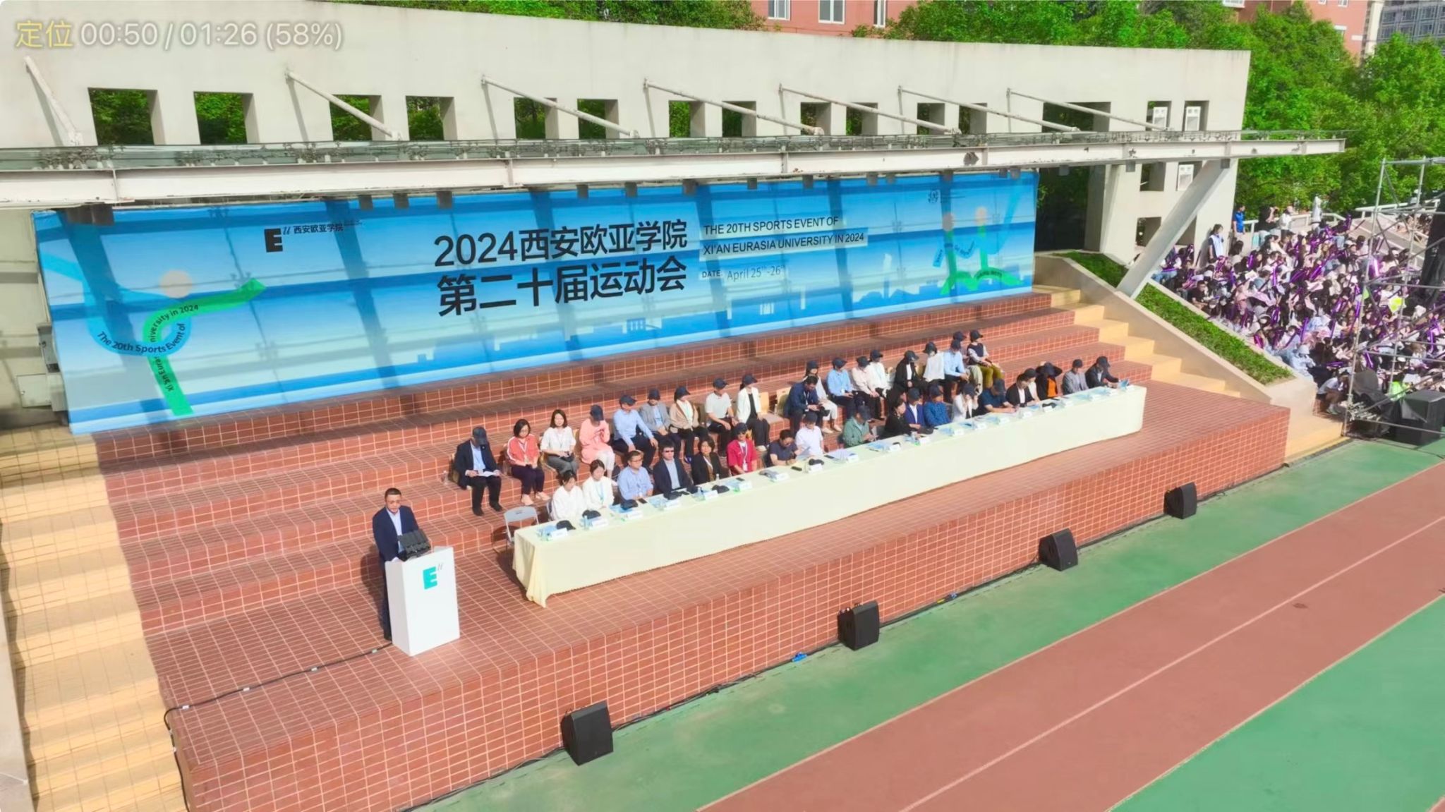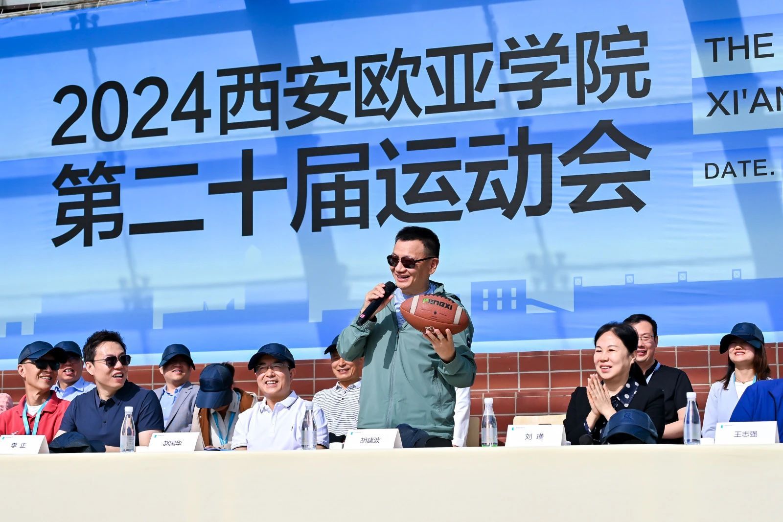 董事长胡建波教授为运动会的开幕式发表致辞。他指出:“我们希望通过体育运动进行育人,培养同学们的兴趣爱好、坚韧品质、团队精神和积极态度。为此,学校新建了西区文体中心,融合体育训练、教学、科研、社会服务等多种功能于一身,建筑面积1万5千余平方米,地上及地下各2层,包含篮球馆、游泳馆,跆拳道、乒乓球、体育舞蹈、骑行、体质测试、健康理疗等空间,可以满足师生的不同运动需求。”