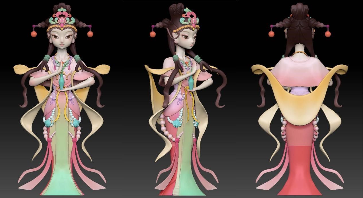 在设计制作人物视觉风格的时候,她们需要在保持山神原有形象的基调之下形成自我独特的风格,人物的整体姿势、四肢动作、表情细节都需要反复打磨。为此她们四处奔走调研,许多工厂打印3D模型都需要耗费大量的人力和物力,颜色稍出差池,就需要重新打印。最终,她们选择了自己手工上色。
