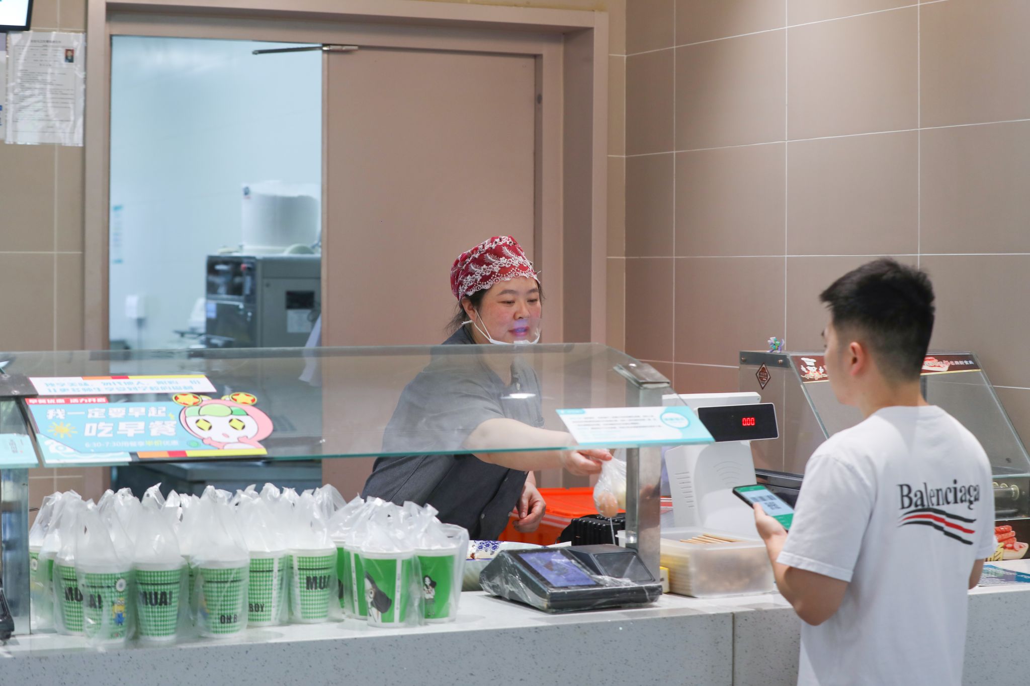 学校餐饮服务中心的工作人员王阿萌,看到越多越多的同学们早起吃早餐感到特别欣慰:“这么好的天气,这么美丽的校园,把孩子们早早叫起来,健康饮食,健康生活。以前早晨7点半之前就餐的只有几百人,最近增长了三四倍,有数千人了,希望以后能唤醒更多的孩子早起吃早餐,元气满满地学习和参加各种活动。”