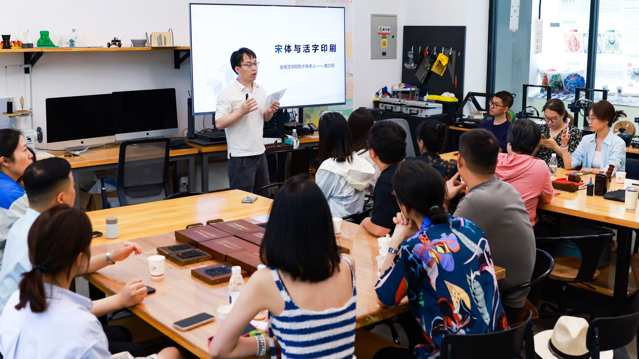 (图十七)党晟先生在设计博物馆向工作坊学员讲述印刷术历史