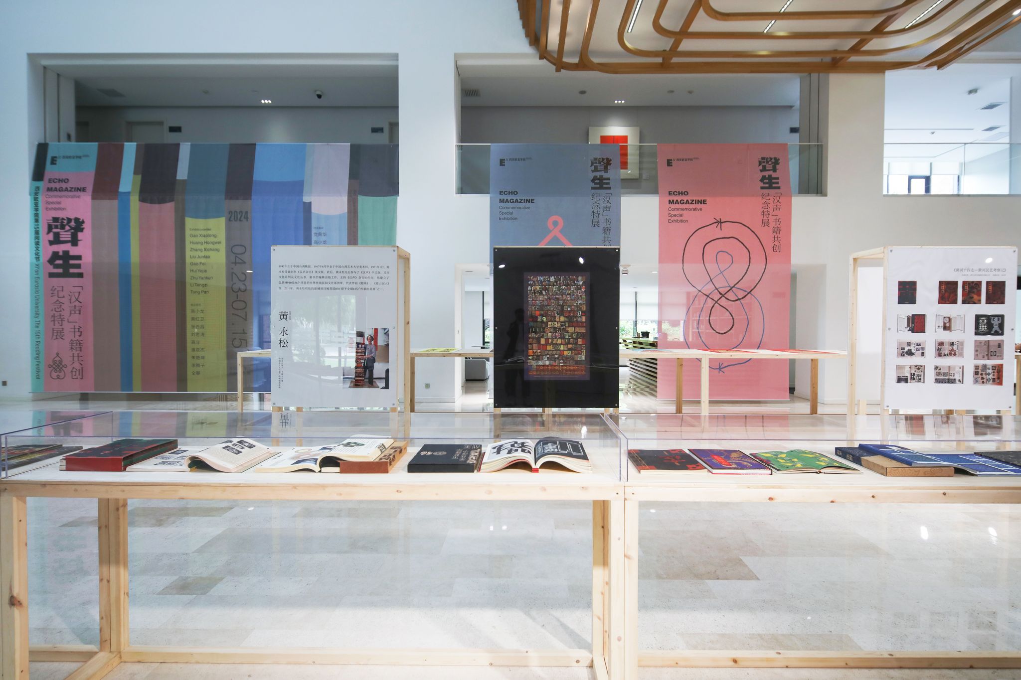 2024年4月,欧亚还携手9位收藏人共同呈现声·生《汉声》书籍共创纪念特展,50余部《汉声》杂志的珍藏书目在行政中心大厅铺展开来,致敬杂志对中华民间文化所作出的卓越贡献。其中不仅可以看到《美哉汉字》专辑的展示,每期杂志的封面字体与内容也都有着充满设计思考的深度探究。