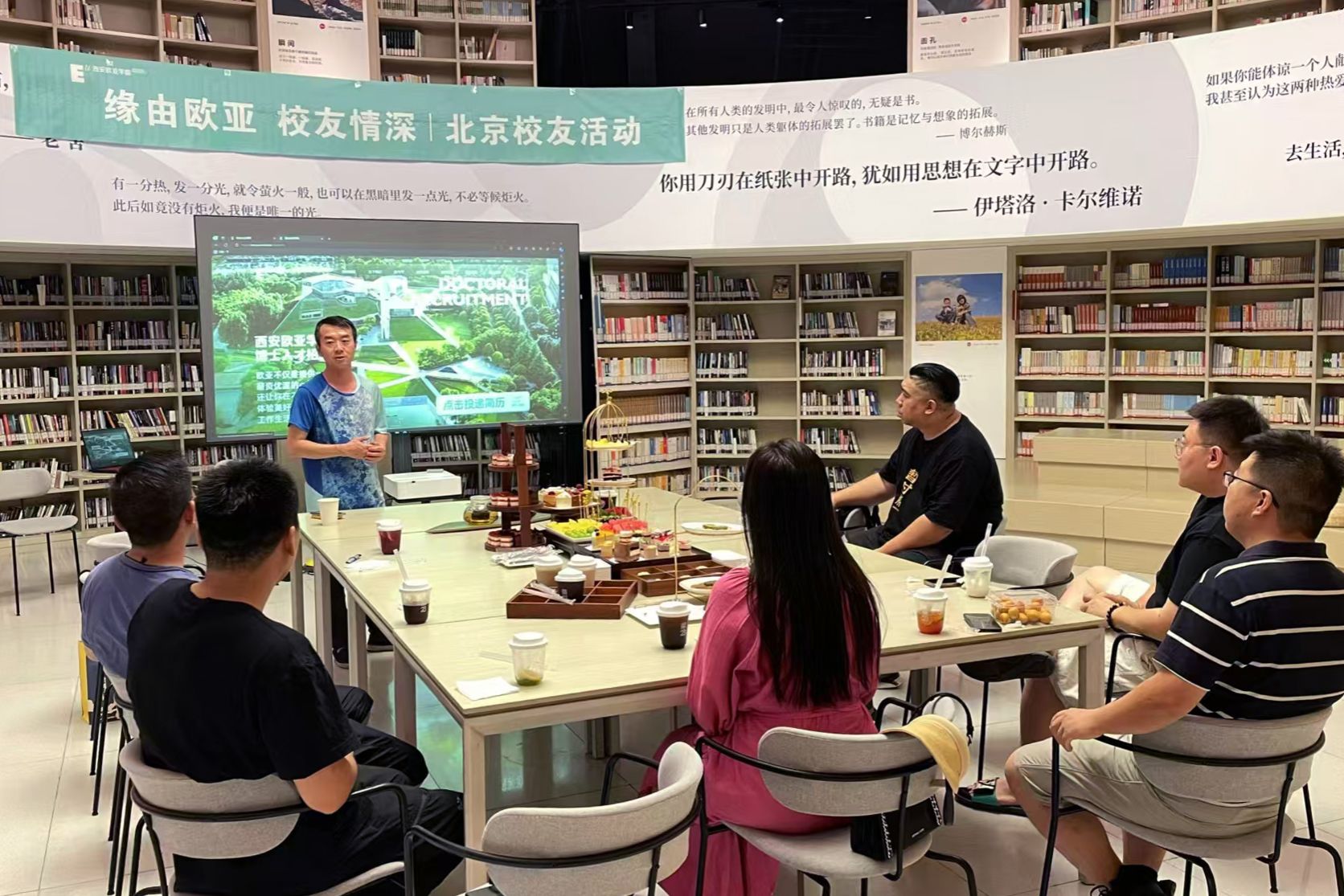7月27日下午,欧亚北京校友会在北京市朝阳区青企畅读汇客厅举办了北京地区校友交流活动。学校校友总会负责人余飞虎向校友们介绍了学校近些年来所取得的成绩,并希望更多的校友参与、支持学校改革和发展。校友们回忆了在校期间的学习、生活经历,分享了在专业学习中的收获与成果,表达了对母校的感恩和怀念之情。