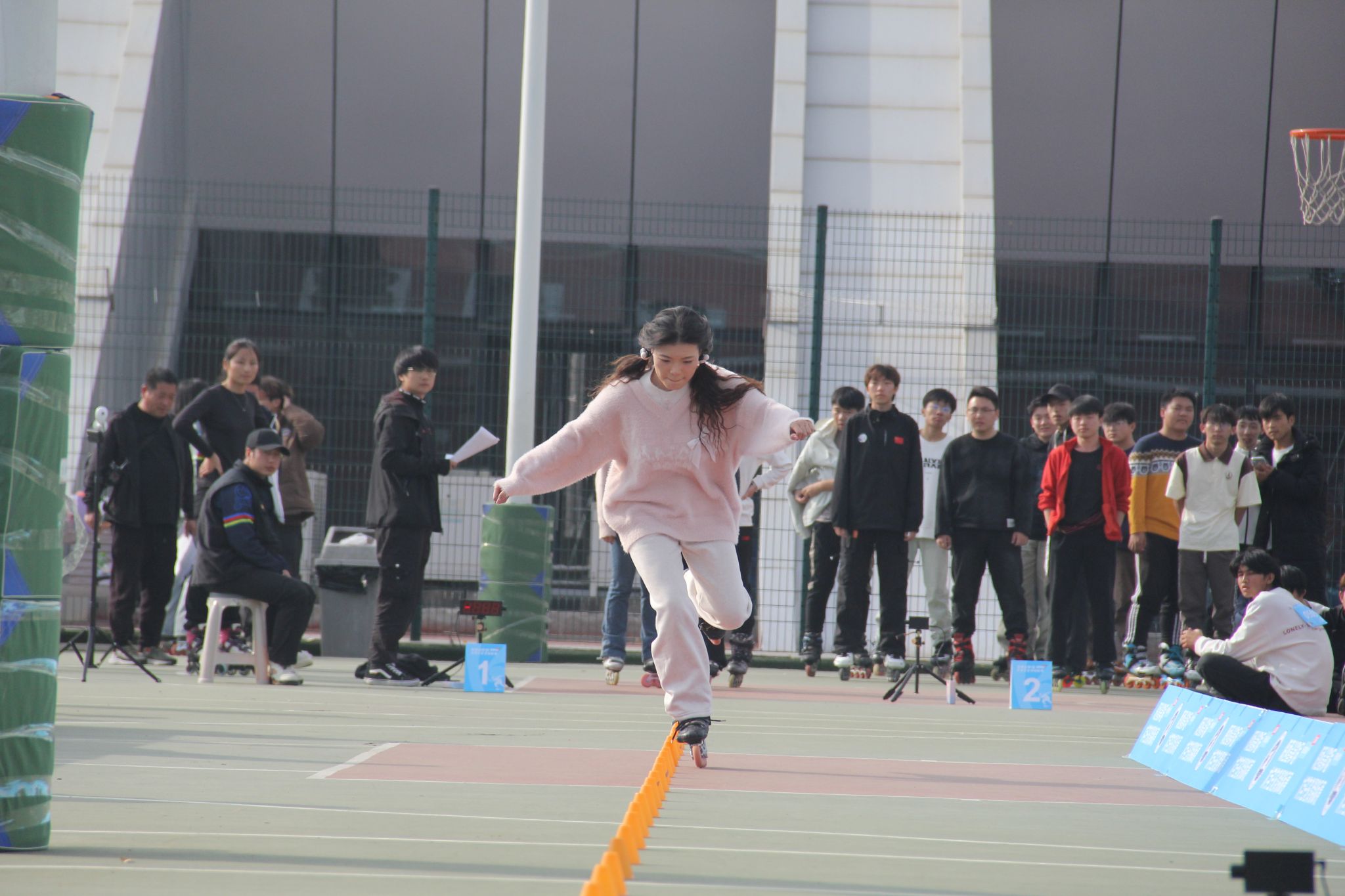轮滑运动作为一项集健身、竞技、娱乐、趣味、技巧、艺术、观赏、休闲等多种元素于一体的体育活动,深受大学生的喜爱。轮滑赛场,既是速度与技巧的舞台,更是勇气与决心的比拼。赛道上,参赛队员们全力滑行,不断刷新纪录,把力量与技巧高度融合的运动演绎得无比精彩,以跃然的身姿彰显着轮滑竞技的魅力。