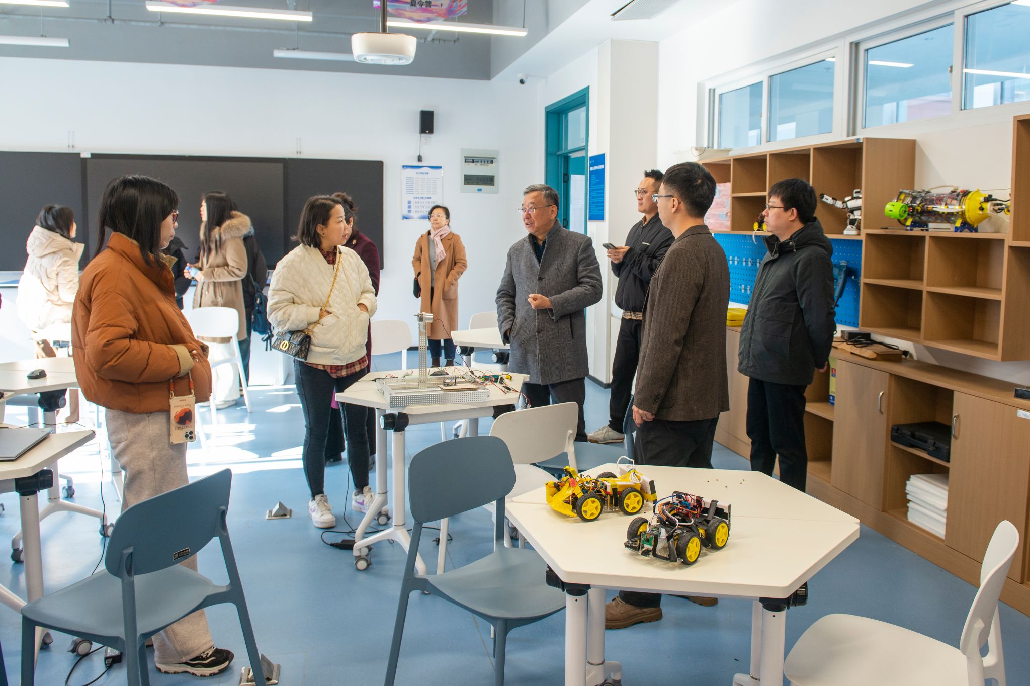 在海尔学校副校长韩潇带领下,申慱官网教师参观了海尔学校多个区域,了解学校如何通过课程设置和教学方式,实行学生个性发展与创新素质培养,探索设计思维与实际体验并重、深度学习与学术研究多模块融合的创新人才培养模式。该教育模式强调不仅要培养学生的理论知识,还要培养其实际操作能力和解决问题的能力。海尔学校将学生视作一个能够创造和贡献的主体,而不是一个只能被动接受知识的容器,提出“师生合一”的理念。