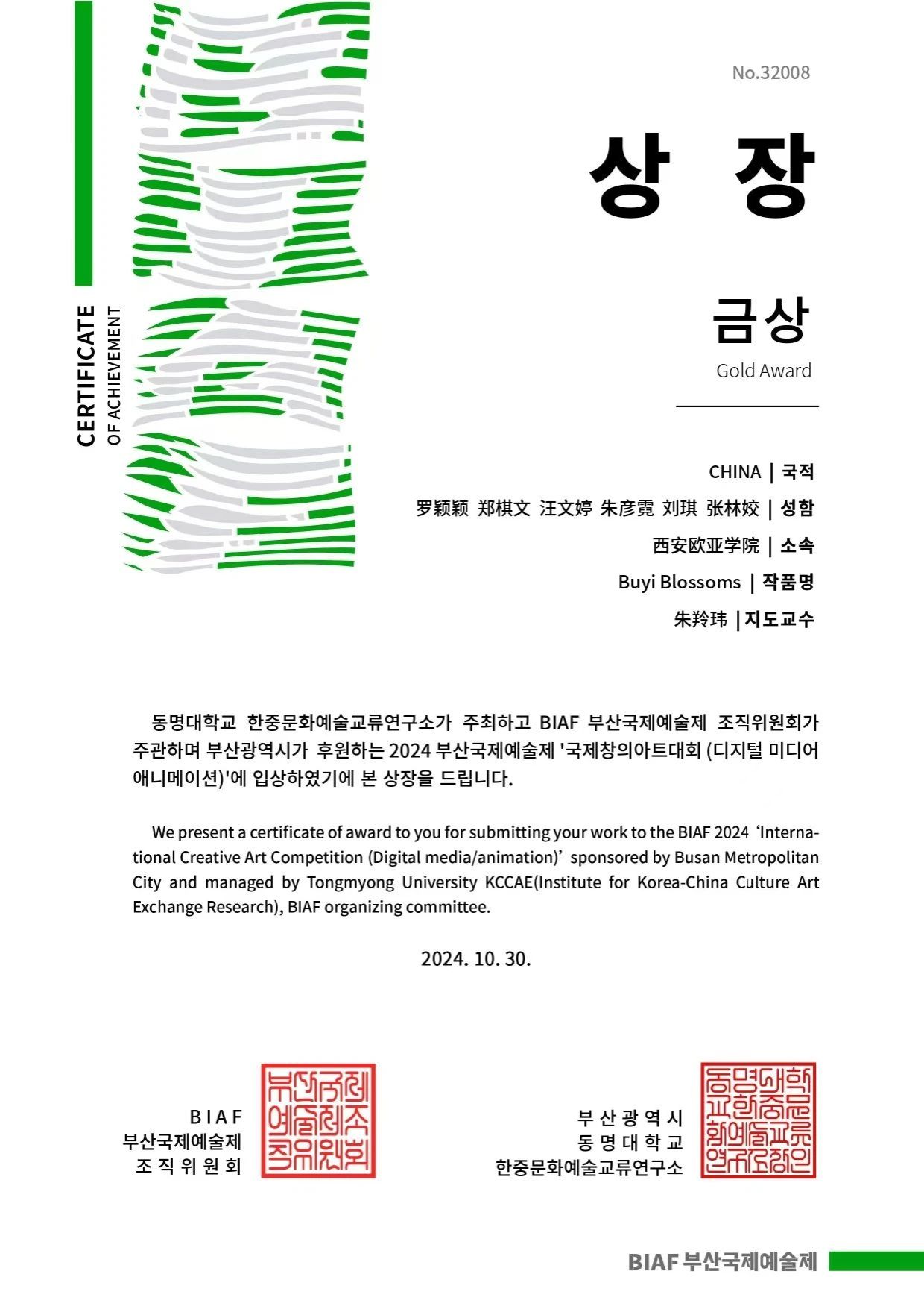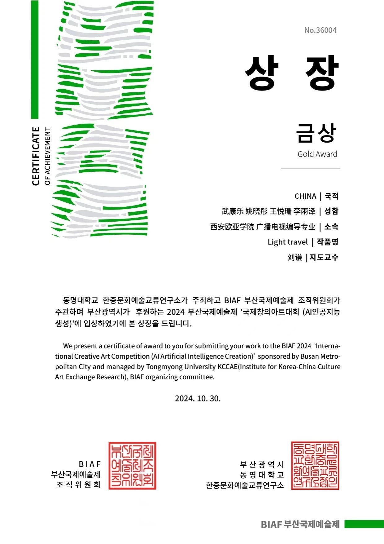 文化传媒学院广播电视编导专业师生在釜山国际艺术节的比拼中斩获两金一银两铜佳绩,他们的作品不仅展现了其在专业领域的高超技艺,更在文化出海的浪潮中,成为弘扬中国传统文化的亮丽名片。