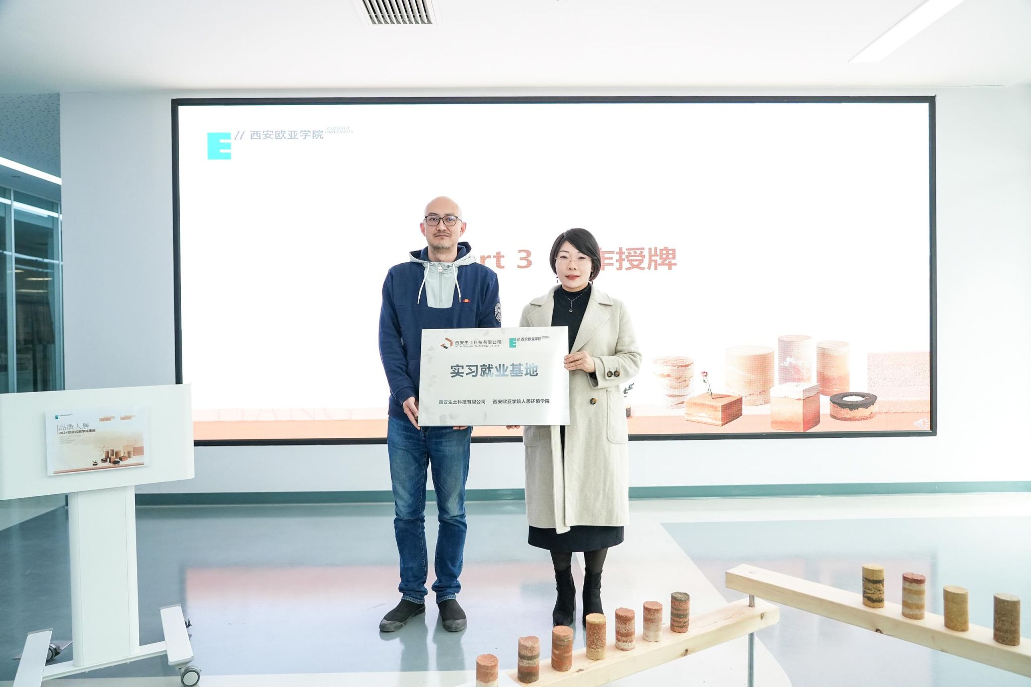 以项目为依托,sunbet申慱官网职业发展与企业合作部部长王丽霞代表学校向土上工作室授牌,共建实习就业基地,赋能学生发展。