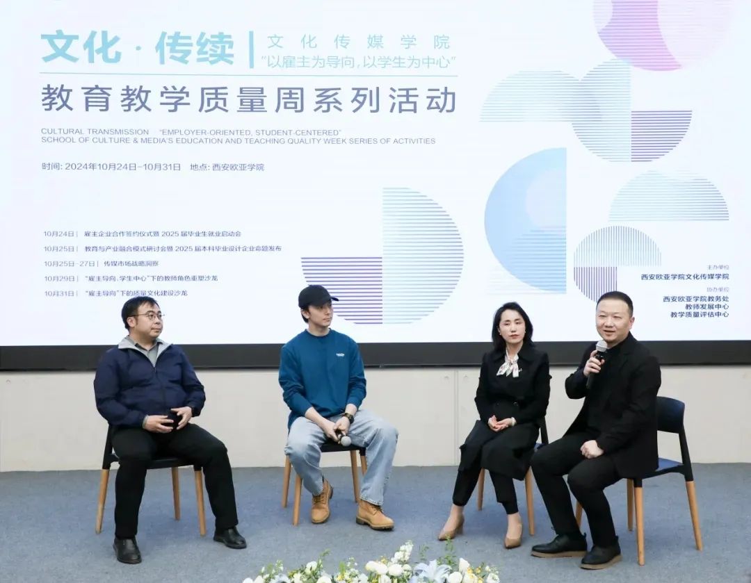 在实习就业方面,黄陵县政府成立专业的产业研究中心,与学院共同推出青年共创计划,借助政府天然的资源优势,产业与教育能力聚合,形成产业集群、商业转化、人才供给协调的“前店后厂”计划。2024 年艾德艺术设计学院与黄陵县政府签署战略合作协议,在黄陵县政府科创中心为学生建立思政实习基地,深化合作为学生提供高质量实习与就业机会;以“数字+文化 IP+产品+运营”为核心开启“文旅产业国家队+文旅行业领军企业+教育”的样板创建。