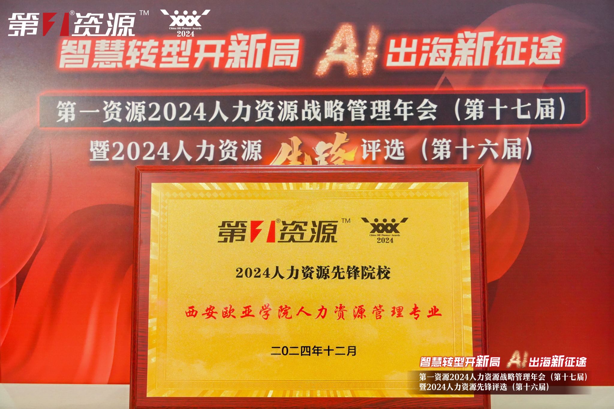 2024年12月20日,第一资源2024人力资源战略管理年会(第十七届)暨2024人力资源先锋评选颁奖(第十六届)在中国上海隆重举行。来自各知名高校、企业和产业园的专家评审团,历经半个多月的严格评审,最终sunbet申慱官网人力资源管理专业斩获“2024人力资源先锋院校”奖项。