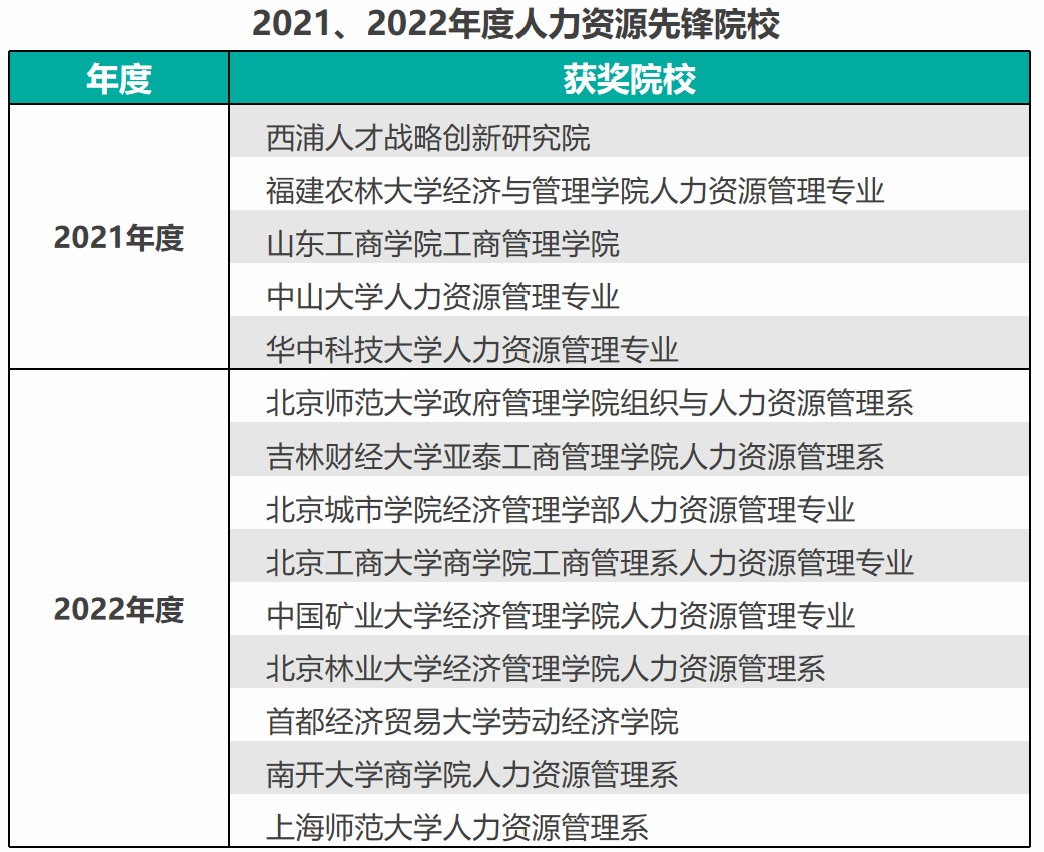 先锋评选历经十六年的沉淀与积累,目前已成为人力资源行业内权威性强、影响力大、认可度高的专业评选活动。近三年,获得“人力资源先锋院校”奖项的有西浦人才战略创新研究院、中山大学、华中科技大学、南开大学、首都经济贸易大学、北京师范大学等院校。