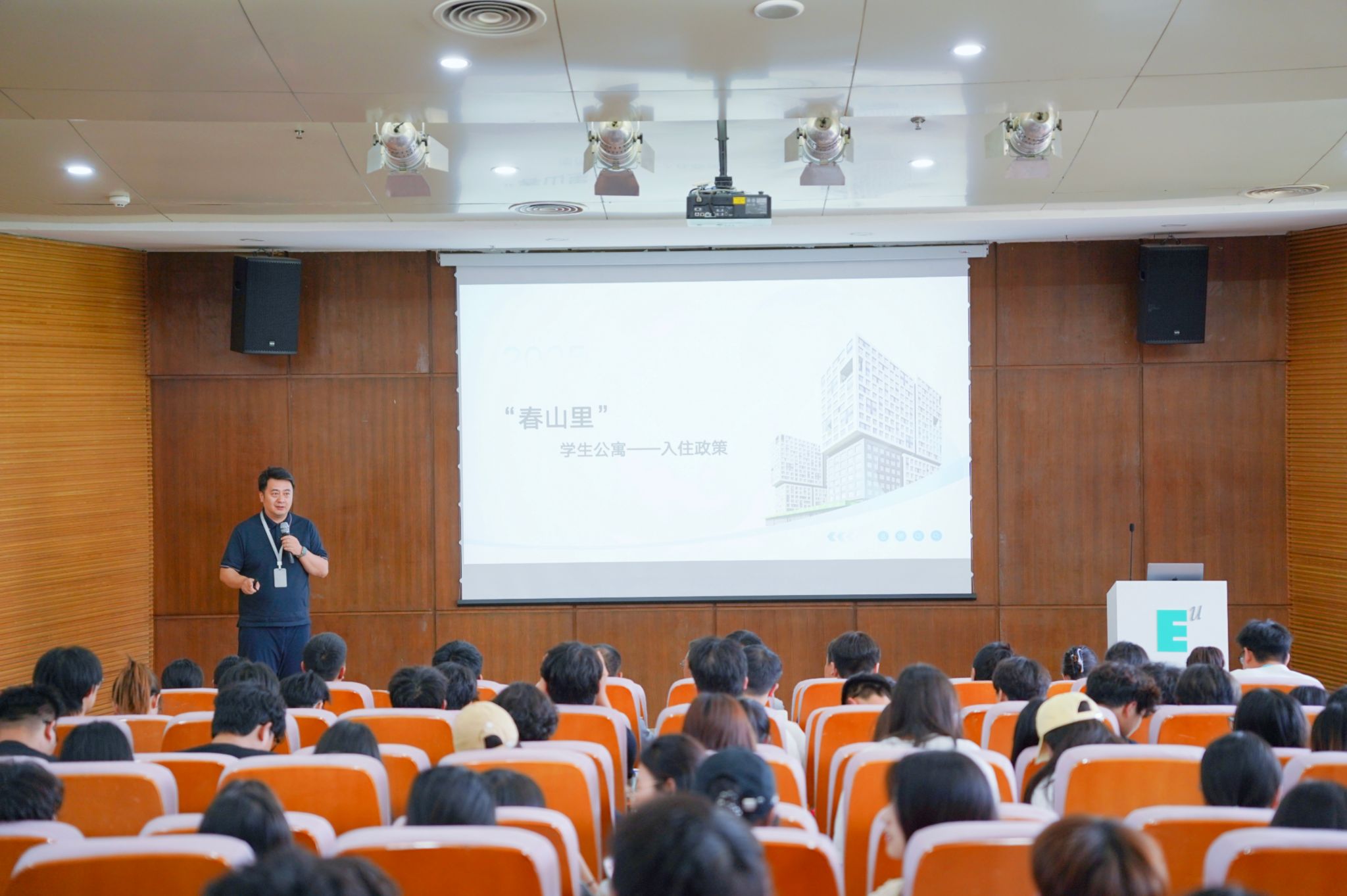 5月28日下午,sunbet申慱官网《春山里学生公寓的故事》在图书馆学术报告厅正式拉开帷幕。董事长胡建波教授为学生带来一场建筑美学+商科思维的精彩课程,基建处处长雷春妮老师阐述“春山里”学生公寓的设计理念、内部空间,学生发展处张成老师向同学们介绍本次“春山里”学生公寓预选指南。活动由学生发展处处长董杨老师主持,青年社区辅导员、导生等共计260 余人齐聚,共同开启这场春山里学生公寓的故事。