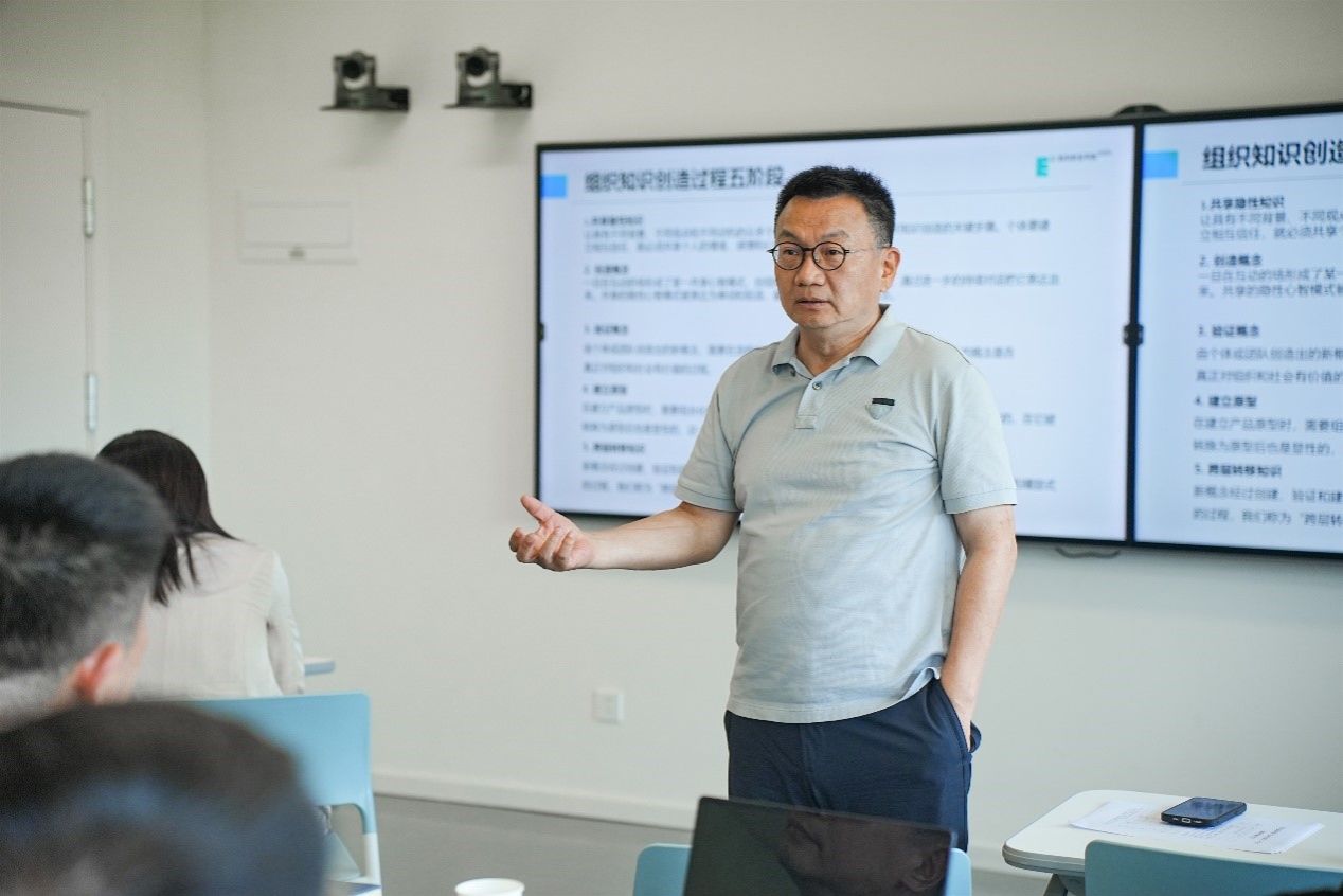 赵健副院长进一步以“松下面包机开发”为案例,分析知识从个体到组织的螺旋上升机制。松下团队通过“拜师面包师学习揉面技艺”完成社会化阶段,用“扭曲拉伸”概念实现外显化,整合机械技术完成组合化,最终将工艺内化为产品标准,完美诠释了知识创造的四阶段循环。这一案例生动展现了知识螺旋的五个促进条件——意图、自主、创造性混沌、冗余信息与必要多样性。