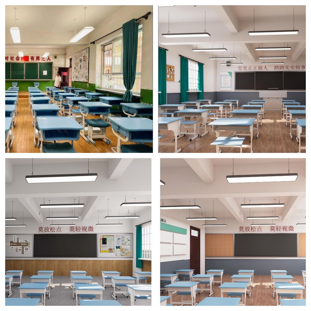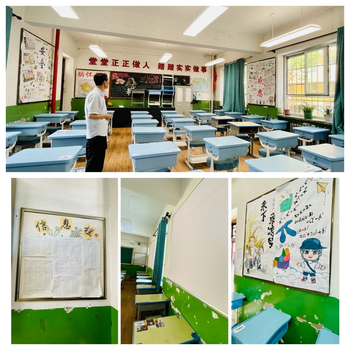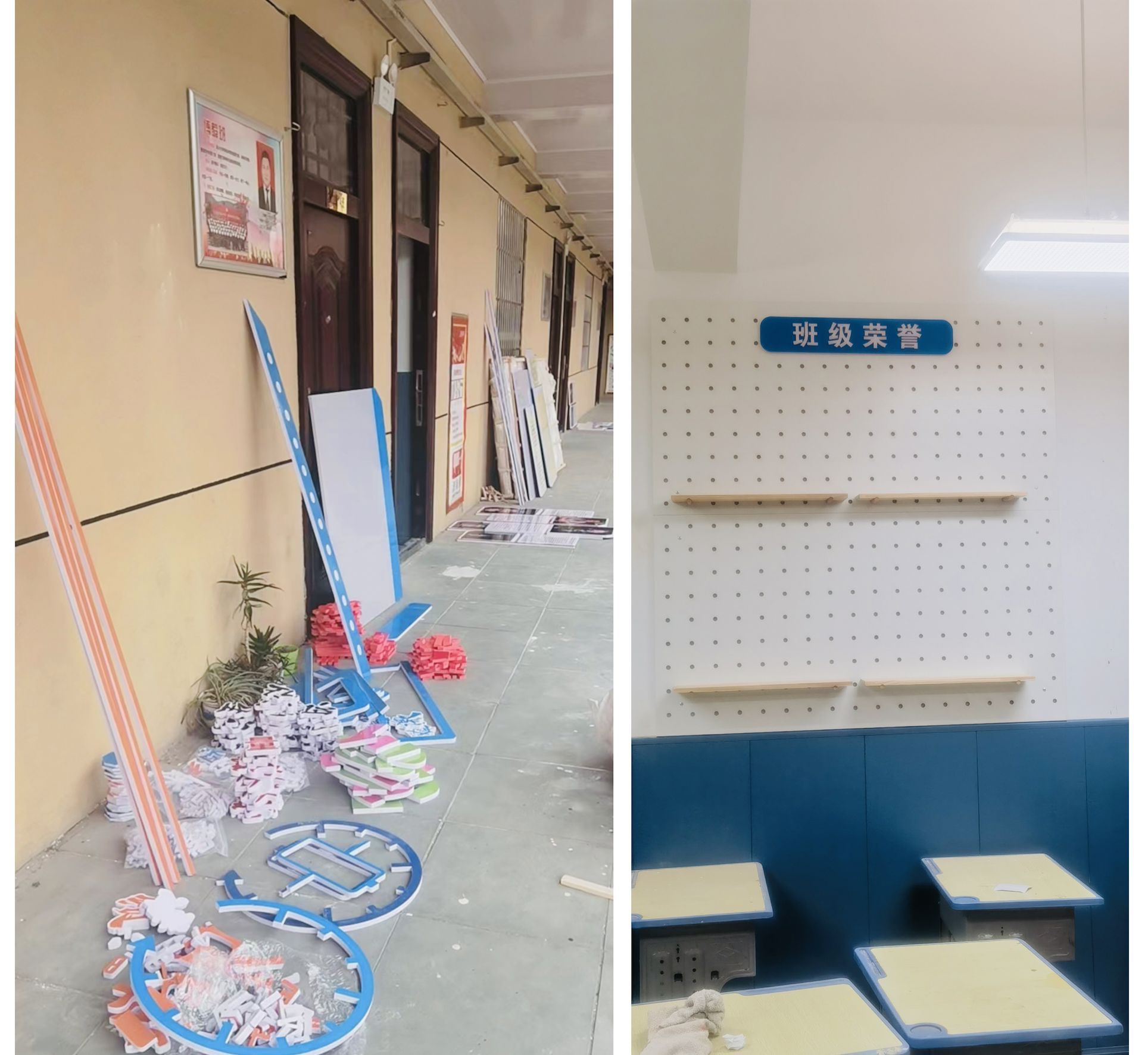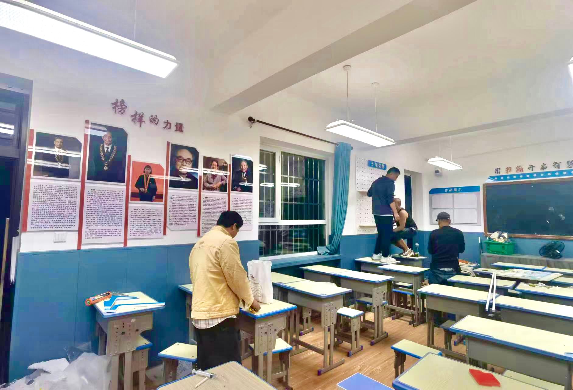 8月19日至30日,完成教室文化墙作品展示区、信息栏、班级公约、中小学生守则、荣誉墙、 名言警句墙、班级风采、图书角八个区域公告栏的市场调研, 材料采样与定制及施工安装等环节,首批两间教室的室内改造于8月30日顺利完成交付使用。