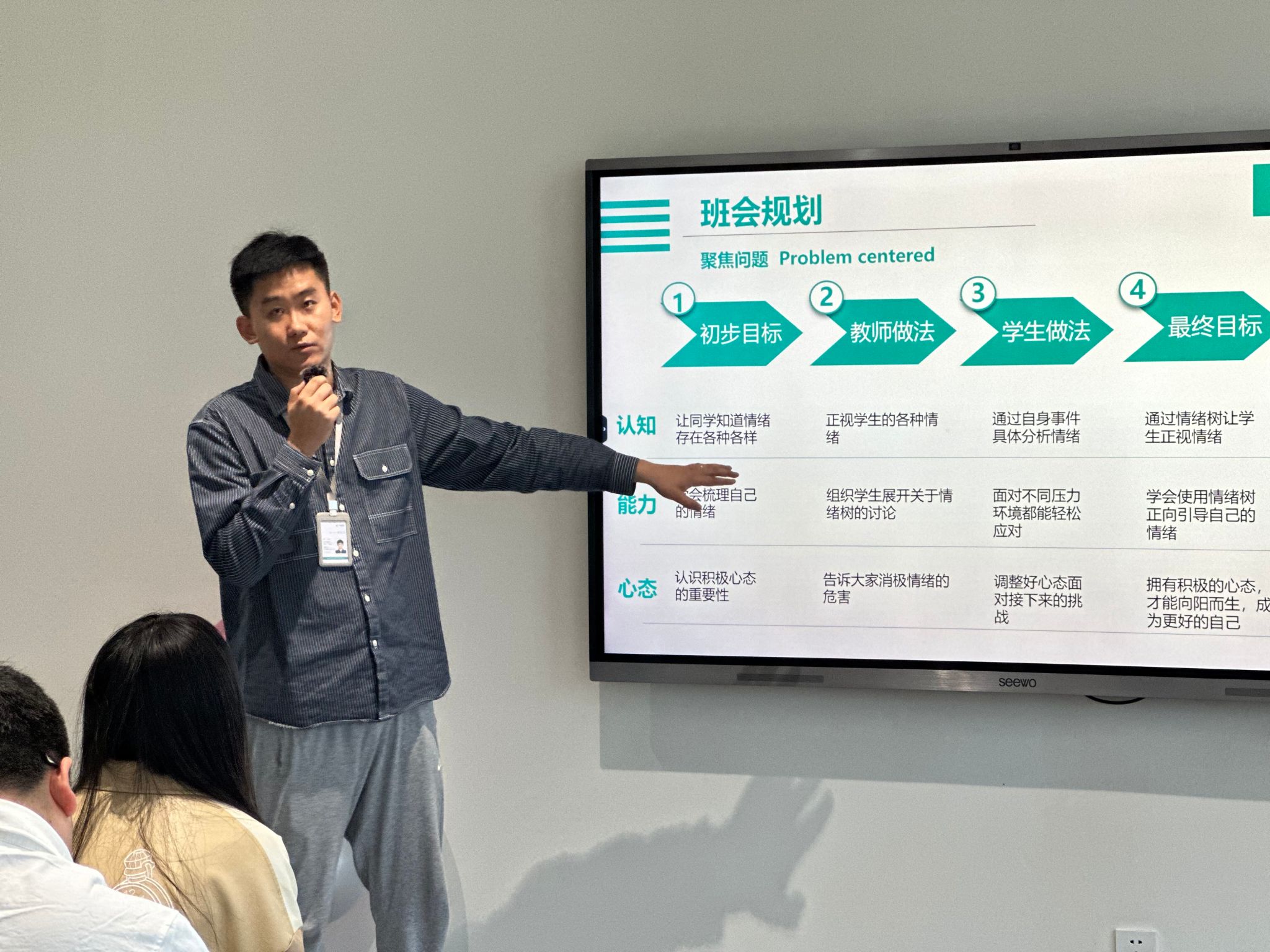 在活动的第三个环节,也给予“小菜鸟”们充分讨论和演练的机会,以青年社区共享价值观花样传播、激发学生学习内驱力为主题,以小组为单位进行班会课程设计并汇报小组的设计成果。各位新入职辅导员积极参与,深入思考,灵活应用教学设计工具,系统进行设计,提出了既有深度又贴近学生兴趣的设计方案。
