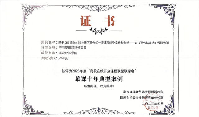 学校已获批8个省级一流专业,自主研发的DNA课程《写作与表达》获批国家级一流本科课程,22项课程获批省级一流本科课程、1项课程获批省级课程思政示范课程,在陕西省同类院校中位居前茅;学校连续4年在教育部教规建中心应用型课程联盟举办的课程建设系列大赛中累计获奖17项,其中一等奖2项;学校自建48门在线开放课程在智慧树平台实现跨校共享,累计选课学校3150所,累计选课人数超74万人次;10门课程思政设计在新华网“新华思政”平台共享;100门校级重点课程中100%课程引入真实项目,沉淀案例2024个,在OA知识平台共享。