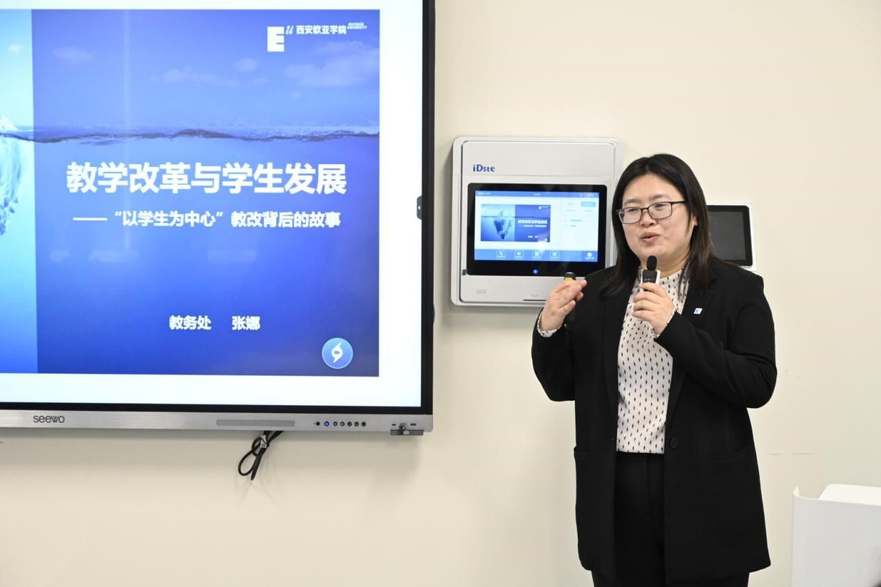 教务处处长张娜关于《sunbet申慱官网教学改革与学生发展》进行了分享,介绍了学校“以学生为中心”的育人理念,即以学生发展为中心、以学生学习为中心、以学生学习效果为中心;从专业、课表、考试与成绩、毕业与学位四个方面,详细阐述了教育教学改革如何支持学生发展,也对欧亚未来教育教学改革工作提出了思考。