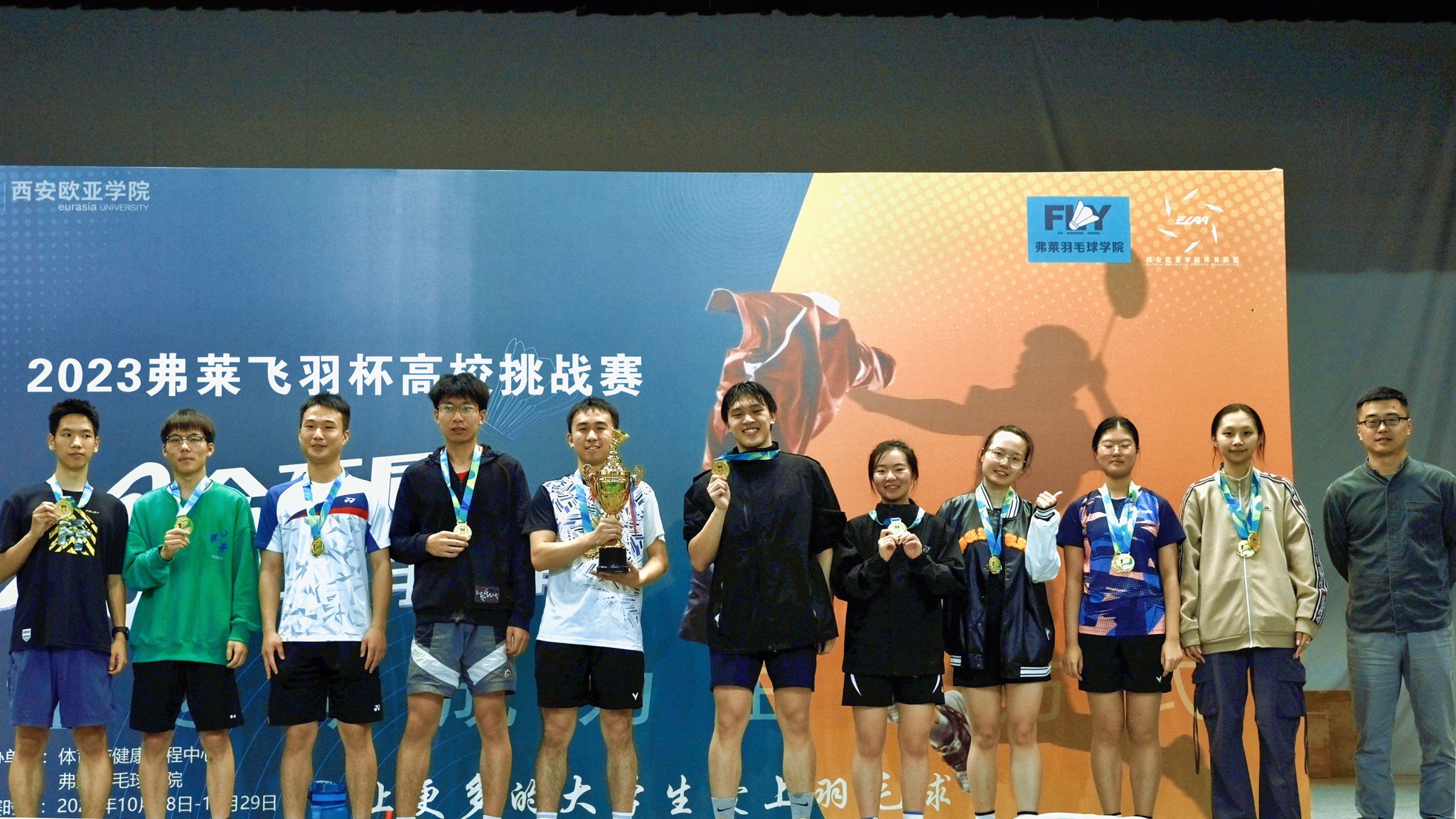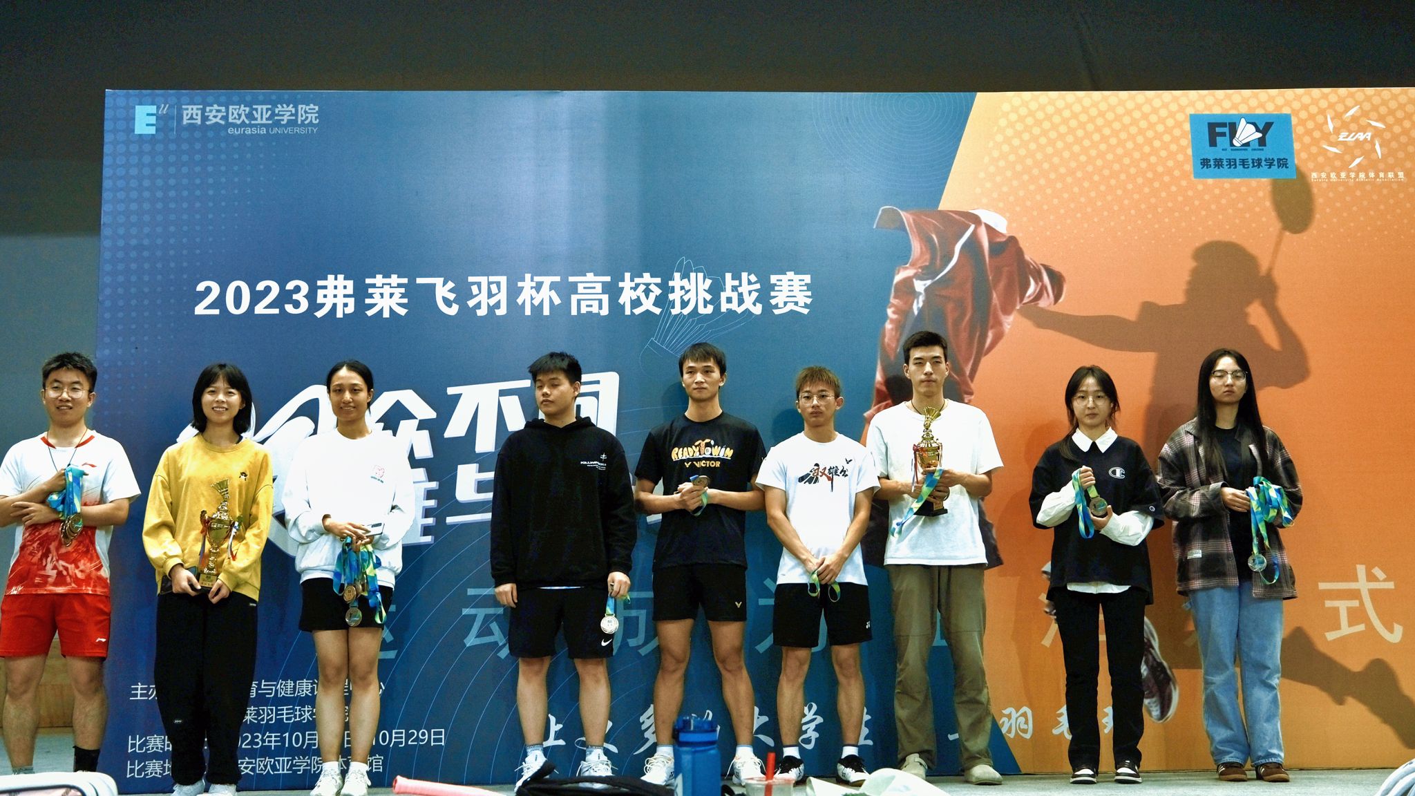 10月28日-29日,申慱官网通识教育学院主办的首届“弗莱飞羽杯”陕西高校羽毛球挑战赛在体育馆举行。来自西安交通大学、西安电子科技大学、西安建筑科技大学、西安外国语大学、西安邮电大学、西安财经大学、西北政法大学和sunbet申慱官网的8个代表队、100余名选手参赛,共享羽球盛宴。