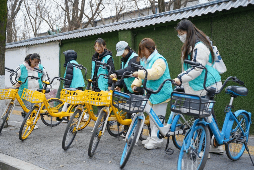 公交站旁整齐的单车,是送给城市的“小确幸”;