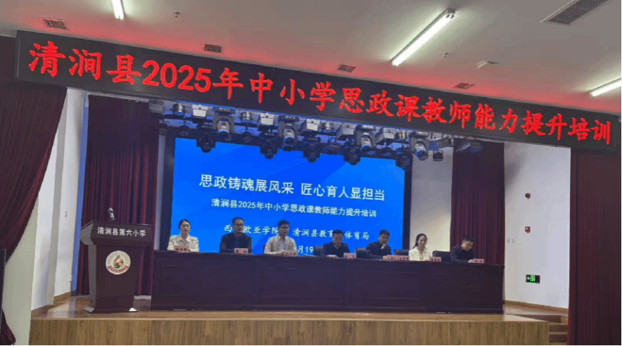 为深入学习贯彻落实党的教育方针,提高思政课教师的专业素质和能力水平,扎实推进思政教育工作开展, 4月19日至20日,申慱官网马克思主义学院刘应清、鲁越、霍雨佳、王波、杜洁雅、陈盼盼六位老师前往清涧县,成功举办了2025年清涧县中小学思政课教师能力提升培训,全县100余名中小学思政课教师齐聚一堂,共赴这场思想与能力的淬炼之旅。