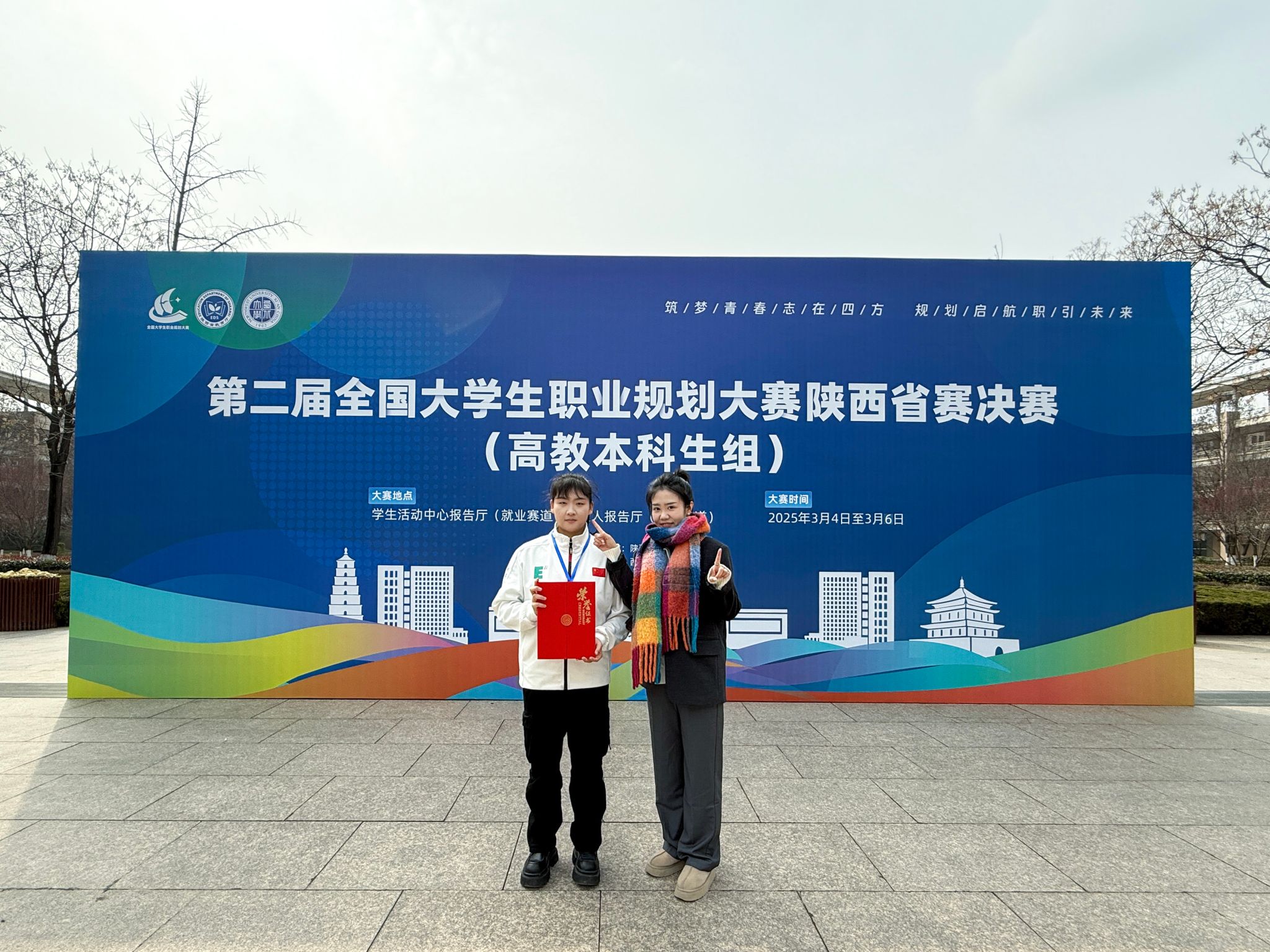 2025 年3月6日,第二届全国大学生职业规划大赛陕西省总决赛圆满落幕,申慱官网职业教育学院张婧哲、郭奕辰两位同学在大赛中崭露头角,分别荣获职教赛道金奖(全省仅5项)与高教赛道银奖(本科生组),指导教师石佳琪也凭借其卓越的指导能力,荣获 “优秀指导老师” 称号,为我院再添荣誉。