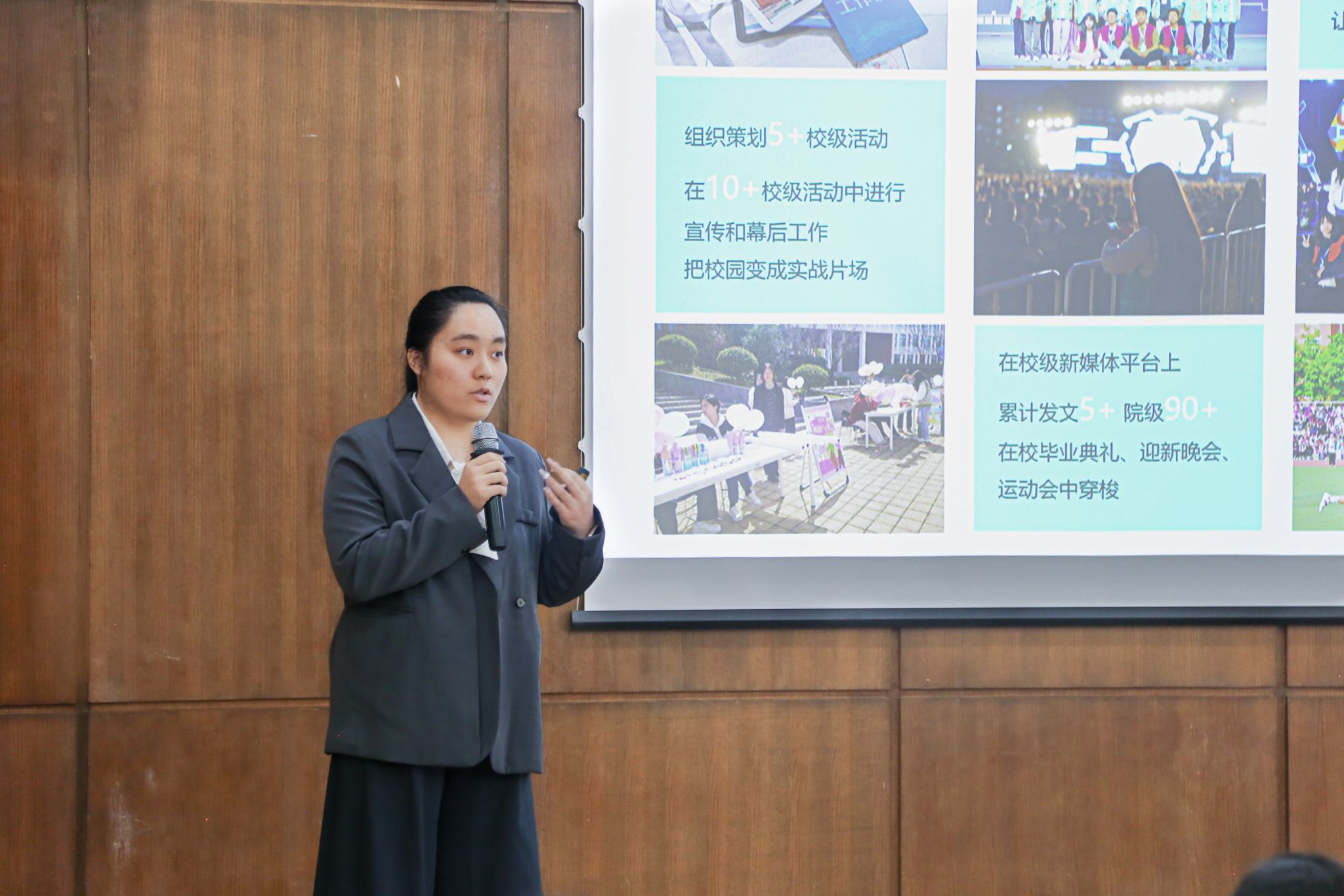 在随后的分享环节,来自会计金融学院、数据科学学院、工商管理学院、文化传媒学院、艾德艺术设计学院、人文教育学院、人居环境学院、信息工程学院、职业教育学院的9位候选人代表依次登场。他们结合自身经历,生动讲述了在欧亚“以学生为中心”教育理念下的成长与蜕变。他们的故事各异,但共同展现了申慱官网学子在专业学习、学科竞赛、技能打磨、公益服务及创新创业等多个维度上的卓越表现与深刻思考,立体化地呈现了申慱官网高素质应用型人才培养的丰硕成果。