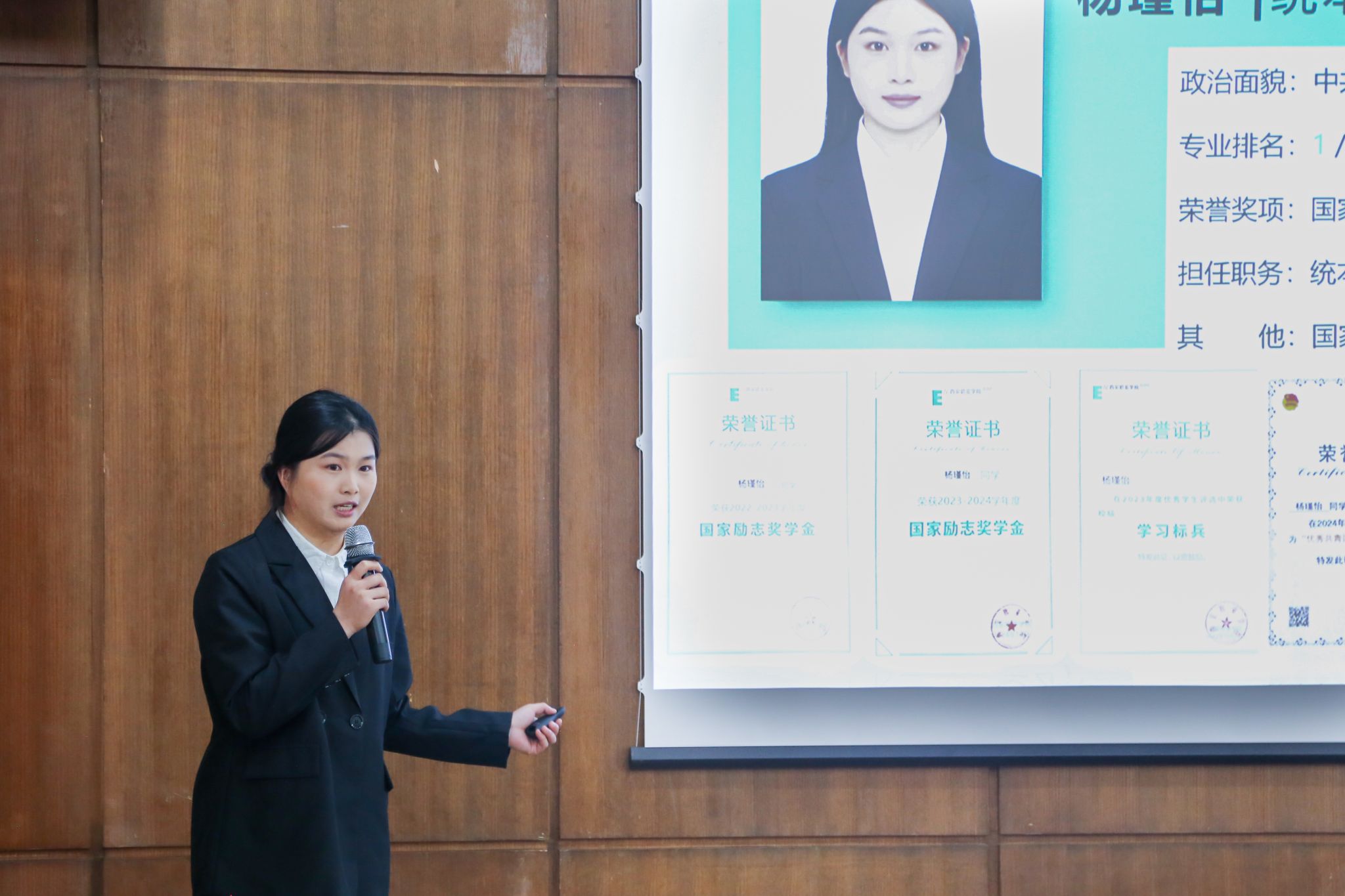 活动伊始,国家奖学金评审委员会副主任、学生发展处处长董杨老师为风采展致辞。他指出,国家奖学金是国家授予高校学生的崇高荣誉,其评审不仅关注学业成绩,更是对候选人综合素质、创新精神与实践能力的全面考量。教育的使命在于“唤醒”与“赋能”,而非简单的“塑造”。他勉励全体同学要从榜样的事迹中汲取力量,明确自身发展方向,“认同脚下的路、认同同行的人、认同内心的声音”,在申慱官网打造的国际化、应用型、新体验的育人质量内涵中,勇敢追寻属于自己的光芒,成为“重品格、会思考、善沟通”的全面发展人才。