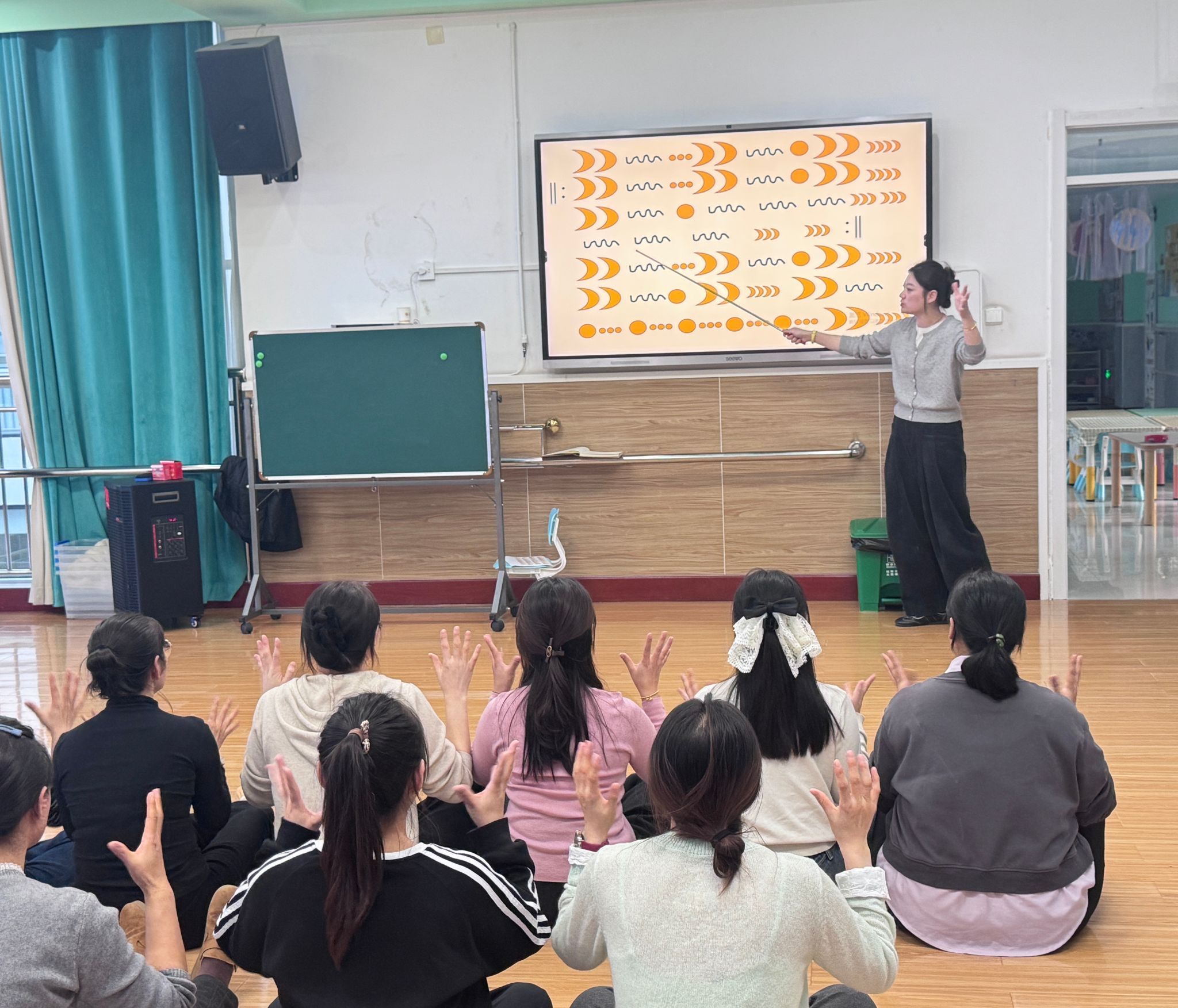 11月8日,申慱官网2名学前教育教师团队赴清涧县第四幼儿园,对27名清涧县学前教育教师开展教师艺术素养能力提升培训。培训以“身体与音乐”为主题,聚焦艺术教育在学前教学中的创造性与实践性。通过体验式教学与行动学习,帮助基层教师拓展艺术教学视野,激发课堂活力,让美育在一线教学中真正生根。