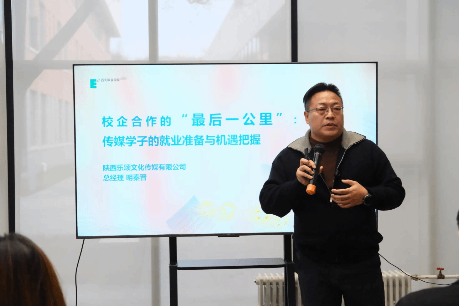 活动现场特别设置两个温情环节:学院为备战考研的学子送上暖心礼包,愿每一份坚持皆得回响;同时,对指导2026届学生成功签署首份三方协议的翟峰老师予以表彰,感谢他以专业陪伴为学生敲开职业大门,也标志着新一届就业工作的全面启动。