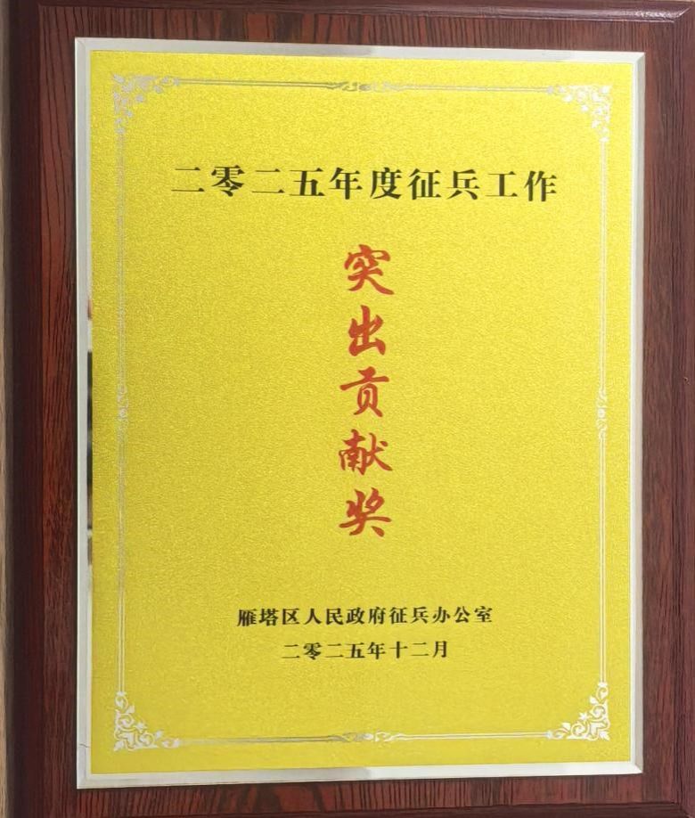 图二:申慱官网荣获雁塔区 2025 年度征兵工作突出贡献奖奖牌