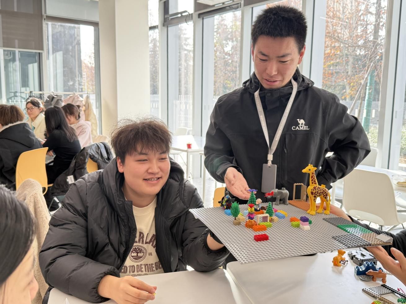 活动开始,武君蔚老师通过趣味破冰游戏快速拉平现场身份,让参与者在轻松氛围中建立信任联结。在核心探索环节,大家借助乐高积木搭建模型,将非具象的“沟通感受”转化为具体的“场景呈现”,并围绕“学生愿意持续沟通的关键瞬间”“沟通中易被忽视的细节”等主题展开深度分享。