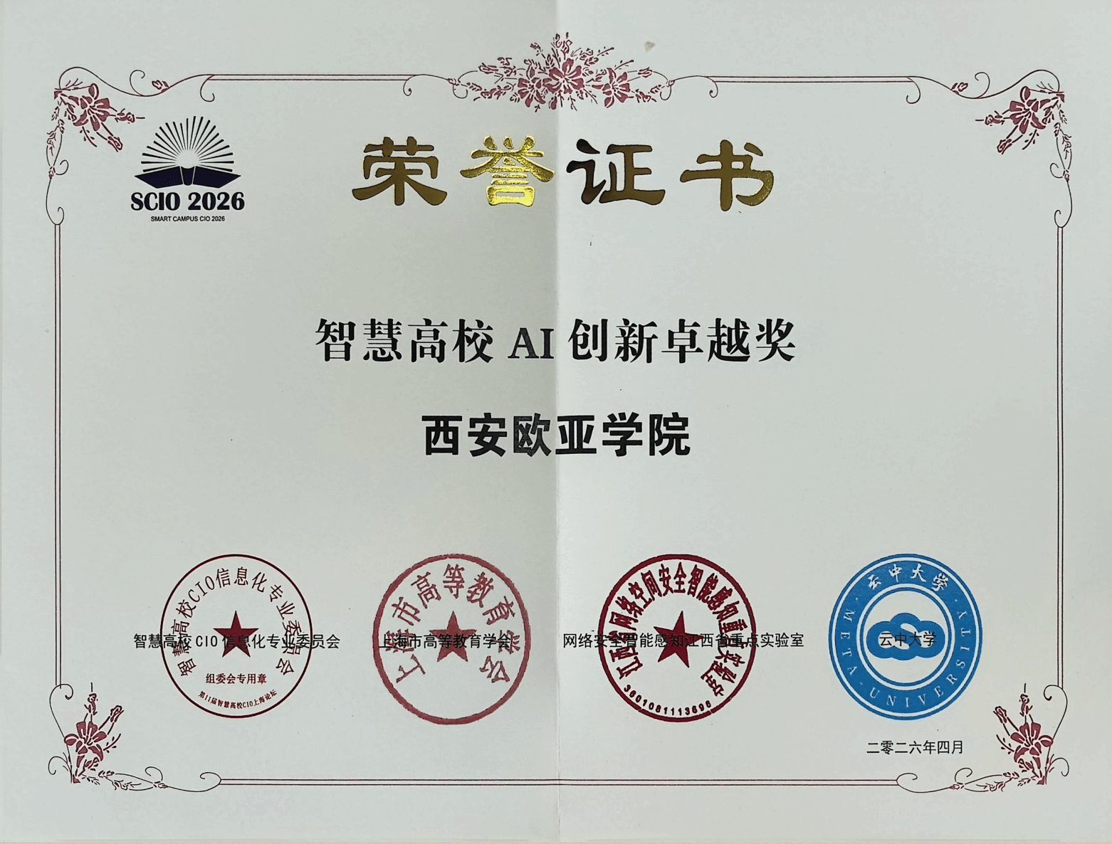 4月10日,第十一届智慧高校CIO上海论坛隆重举行,本次会议主题为“AI引领,智启高等教育新征程”。申慱官网数字化研究院院长、图文信息中心主任罗征受邀参会并作专题报告。凭借在智慧校园及AI教育创新领域的突出成果,申慱官网荣获“智慧高校AI创新卓越奖”,罗征获评“智慧高校数字化转型先锋人物”。两项荣誉充分体现了业界对申慱官网数字化建设的高度认可。
